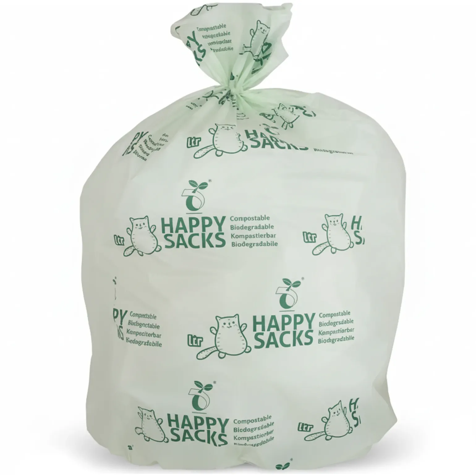 Bij Compliment.nl koop je voordelig de Afvalzak Bio 50×57 cm T15 30 liter in een rol van 10 stuks, een duurzame en biologisch afbreekbare oplossing voor het scheiden van organisch afval. Deze melkwit groene Happy Sacks afvalzakken zijn gemaakt van biologisch materiaal op basis van onder andere aardappelzetmeel suikerriet en mais waardoor ze verantwoord met het GFT afval kunnen worden mee gecomposteerd. Dankzij de T15 dikte zijn de zakken verrassend sterk en geschikt voor dagelijks gebruik in huishoudens kantines scholen en buitenruimtes waar tuinafval of organisch afval vrijkomt. De zakken hebben een capaciteit van 30 liter en een afmeting van 50 bij 57 cm waardoor ze in de meeste standaard afvalemmers passen en gemakkelijk te vervangen zijn. Happy Sacks draagt het Kiemplantlogo wat staat voor duurzaamheid en composteerbaarheid en maakt dit tot een milieubewust alternatief voor traditionele plastic afvalzakken.