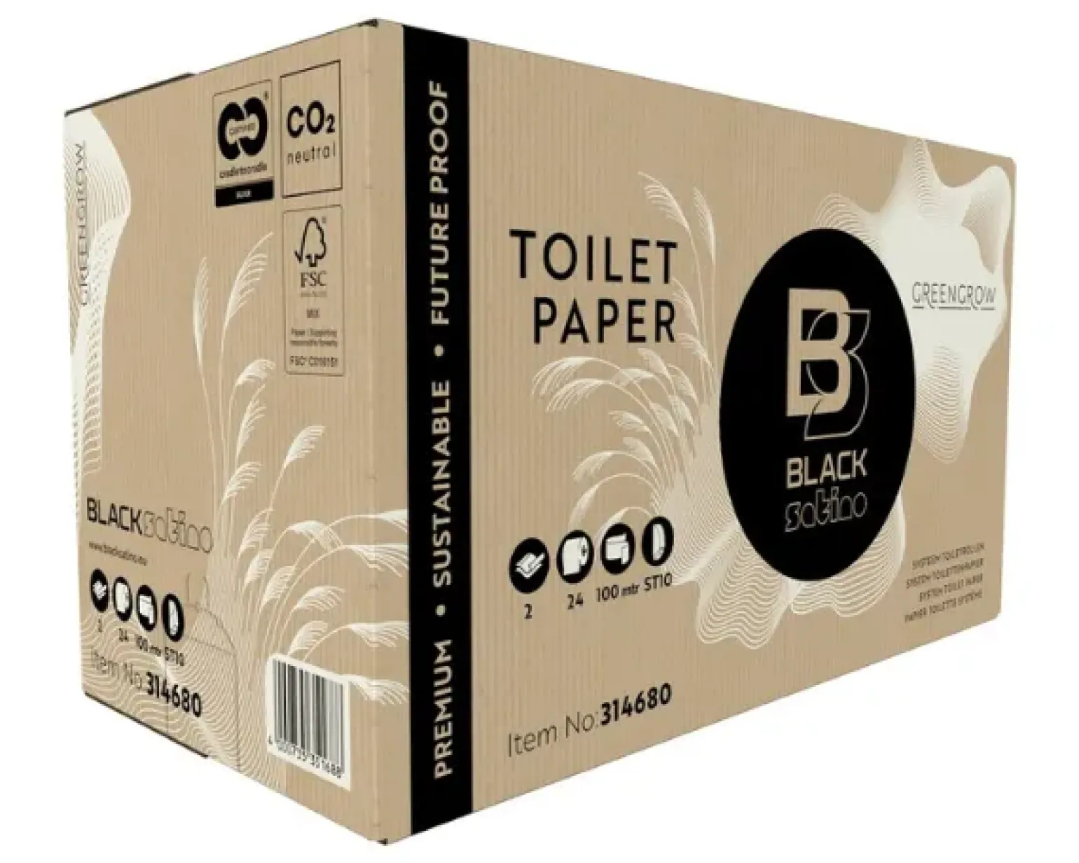 BlackSatino GreenGrow systeem toiletrollenzijn rollen toiletpapier voor jouw systeemroldispenser (bijvoorbeeld de ). Deze toiletrollen van BlackSatino bieden optimaal comfort en hygiëne. Gemaakt van duurzame grondstoffen uit oud papier aangevuld met verse pulp. Hierdoor zijn BlackSatino GreenGrow systeem wc-rollen niet alleen zacht en sterk absorberend, maar ook duurzaam en beter voor het milieu dan ander toiletpapier. Op 1 rol zitten 712 velletjes toiletpapier. Je koopt BlackSatino GreenGrow 2-laags wc-papier per doos met 24 rollen. Neem ook een kijkje in ons uitgebreide assortiment.