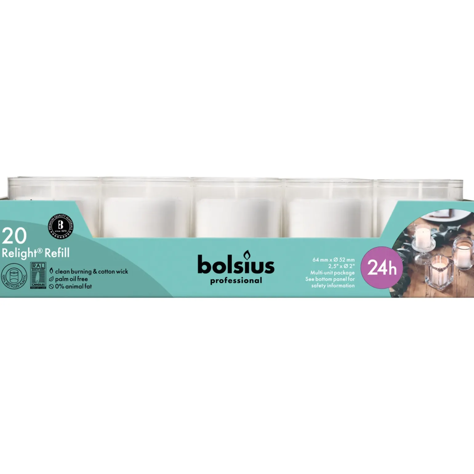 De populaire Bolsius navulling is speciaal gemaakt voor de horeca. Zo voldoen deze aan het RAL kwaliteitslabel. Dit keurmerk geeft garanties op de brandduur, kleurvast, vormvast en dat het rook- en roetarm is. De Bolsius navulling is zeer prettig voor een goed onderhouden horecazaak. In een tray zitten 20 waxinelichten. Deze refill is transparant maar desgewenst hebben wij ook de theelichten in het of in andere vormen.