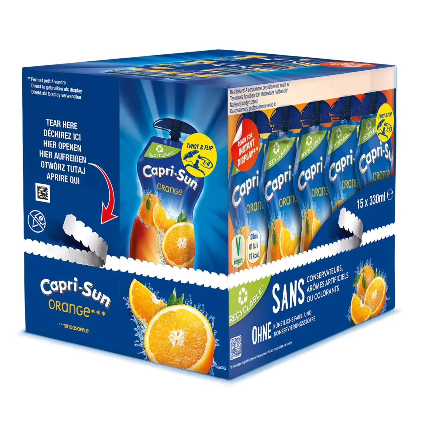 Bij Compliment.nl koop je voordelig Capri-Sun Orange (15x 330ml), een verfrissende dorstlesser met de klassieke sinaasappelsmaak die geliefd is sinds 1969. Deze drank combineert 10% vruchtensap uit concentraat, waaronder sinaasappel (6%) en citroen (4%), met bronwater en een vleugje natuurlijke sinaasappelaroma. Gezoet met een combinatie van suiker en steviolglycosiden uit de steviaplant, biedt het een evenwichtige zoetheid met slechts 19 kcal per 100 ml. Capri-Sun Orange is vrij van kunstmatige kleurstoffen, conserveermiddelen en smaakstoffen, en is geschikt voor veganisten, glutenvrij en lactosevrij. De handige hersluitbare zakjes van 330 ml zijn ideaal voor onderweg, op school of tijdens het sporten. Verpakt per 15 stuks, zodat je altijd een voorraad bij de hand hebt.
