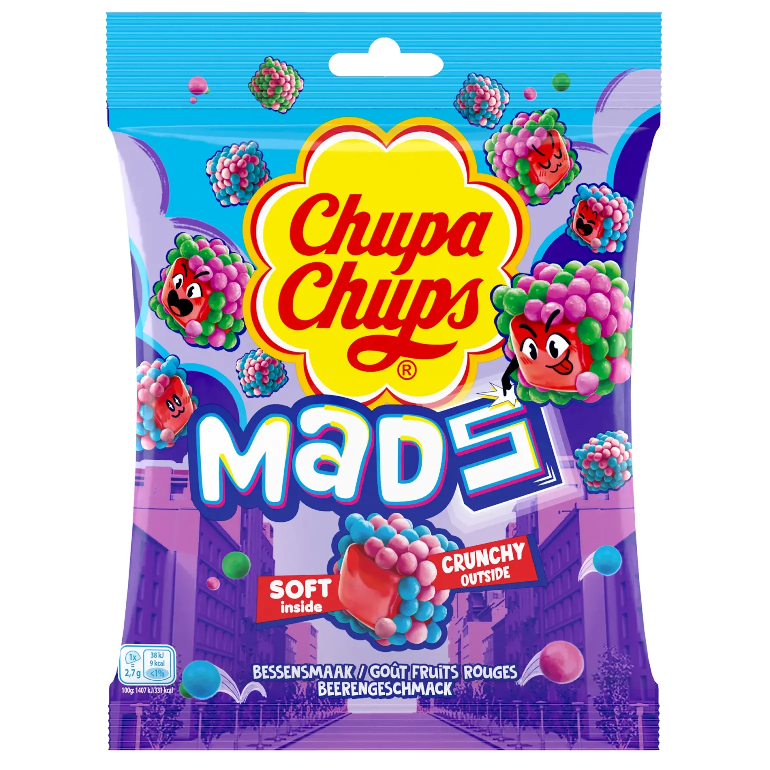 Chupa Chups Mads Bessen uitdeelzakje (12×115 gram) is een kleurrijke snoepmix met zachte, fruitige gummies in verschillende bessensmaken. Deze bekende Mads-snoepjes hebben speelse vormen en een frisse, zoete smaakbeleving die vooral bij kinderen populair is. De verpakking bevat 12 zakjes van 115 gram, ideaal als uitdeelzakje, traktatie of als kleurrijke aanvulling op het snoepschap. Dankzij de herkenbare Chupa Chups-uitstraling is dit product aantrekkelijk voor impulsverkoop en feestelijke momenten.