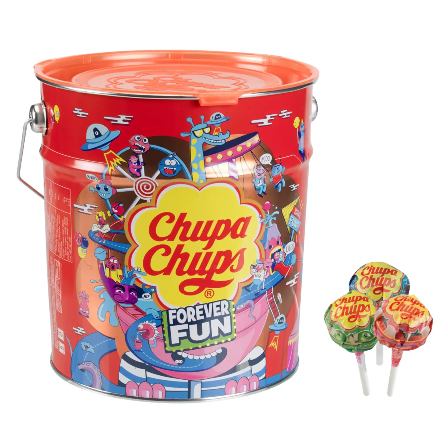 Bij Compliment.nl koop je voordelig een vrolijk blik vol iconische lolly’s die iedereen blij maken. Het Chupa Chups The Best Of blik met 150 stuks combineert de populairste smaken zoals aardbei, appel, kers, cola, aardbei-room en framboos-vanille – perfect om te delen of altijd paraat te hebben voor een zoet moment. Dankzij de handige hersluitbare verpakking blijven de lolly’s lang vers en is uitdelen een feestje. De mix van klassiekers zorgt keer op keer voor vrolijkheid en nostalgie, ideaal voor feestjes, traktaties of gewoon omdat je zin hebt in iets lekkers.