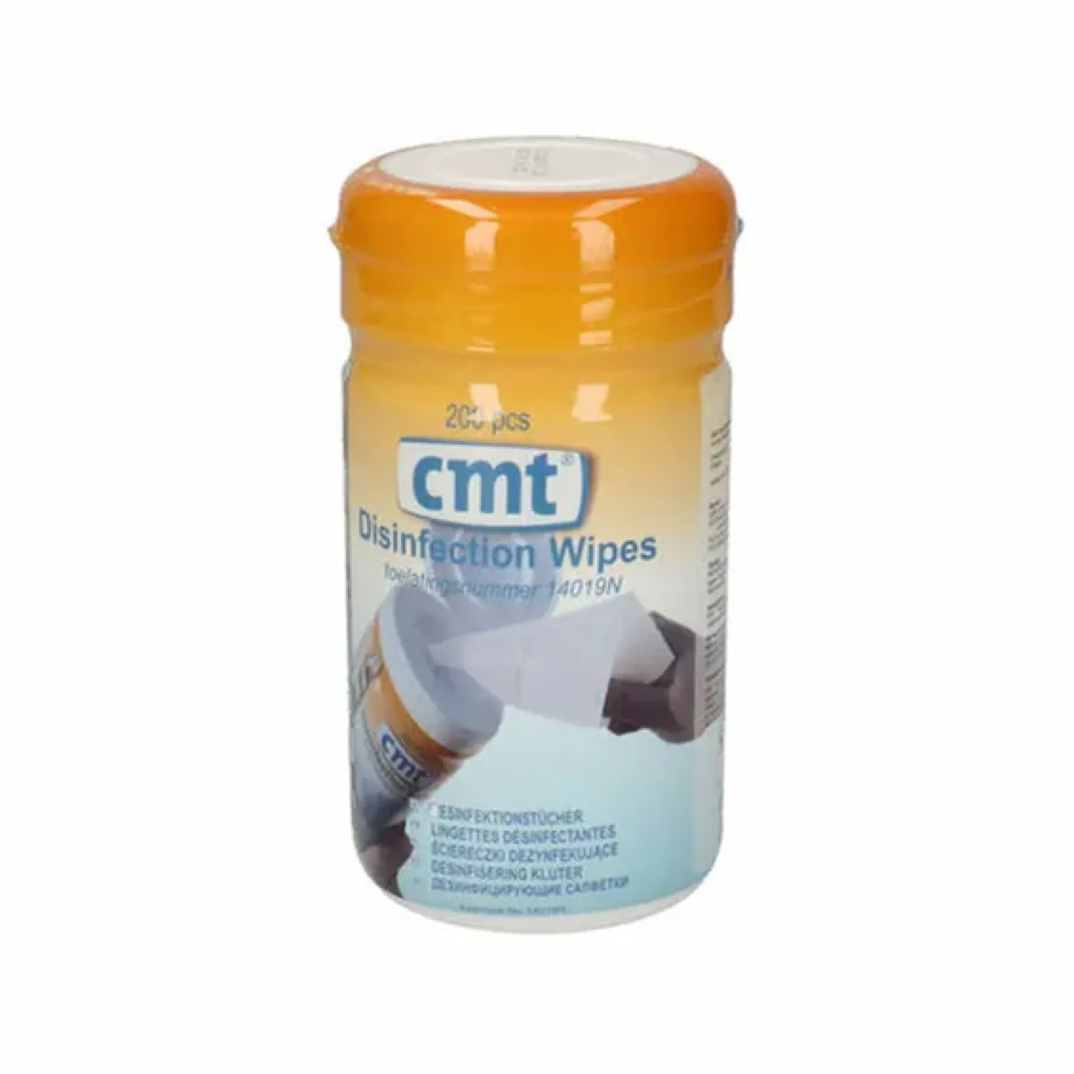 Gebruik biociden veilig. Lees voor gebruik eerst het etiket en de productinformatie. CMT desinfectie doekjes zijn gebruiksklare alcoholhoudende desinfectie doekjes voor eenmalig gebruik op basis van een mix van ethanol en isopropylalcohol. De CMT desinfectie doekjes kunnen worden gebruikt als middel ter bestrijding van bacteriën (exclusief bacteriesporen en mycobacteriën), gisten en schimmels op kleine harde oppervlakten en instrumenten. CMT desinfectie doekjes zijn geschikt om ingezet te wordenop oppervlakten die in contact komen met voedingswaren en/of de grondstoffen hiervoor. Daarom zijn CMT Desinfectie doekjes bij uitstek geschikt voor grootkeukens, restaurants, voedingsindustrie, laboratoria, wellness, gezondheidszorg en schoonmaakindustrie. De CMT desinfectie doekjes zijn toegelaten door het CTGB onder toelatingsnummer 14019N. De kleur van de doekjes zijn wit.