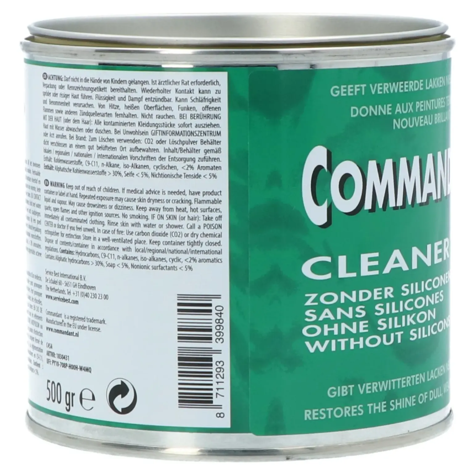 De Commandant Cleaner No. 4 is al decennia de vertrouwde standaard voor het herstellen van glans op diverse oppervlakken. Dit krachtige polijstmiddel in het iconische groene blik is speciaal ontwikkeld om verweerde lak en doffe plekken, ontstaan door UV-straling of weersinvloeden, weer tot leven te wekken. Of het nu gaat om het wagenpark op de werkvloer, de caravan in de stalling of een verwaarloosde machinebehuizing; deze cleaner biedt een grondige dieptereiniging zonder siliconen. Dankzij de verfijnde slijpende werking verdwijnen lichte krasjes en lakfouten als sneeuw voor de zon, wat resulteert in een gladde en egale basis.