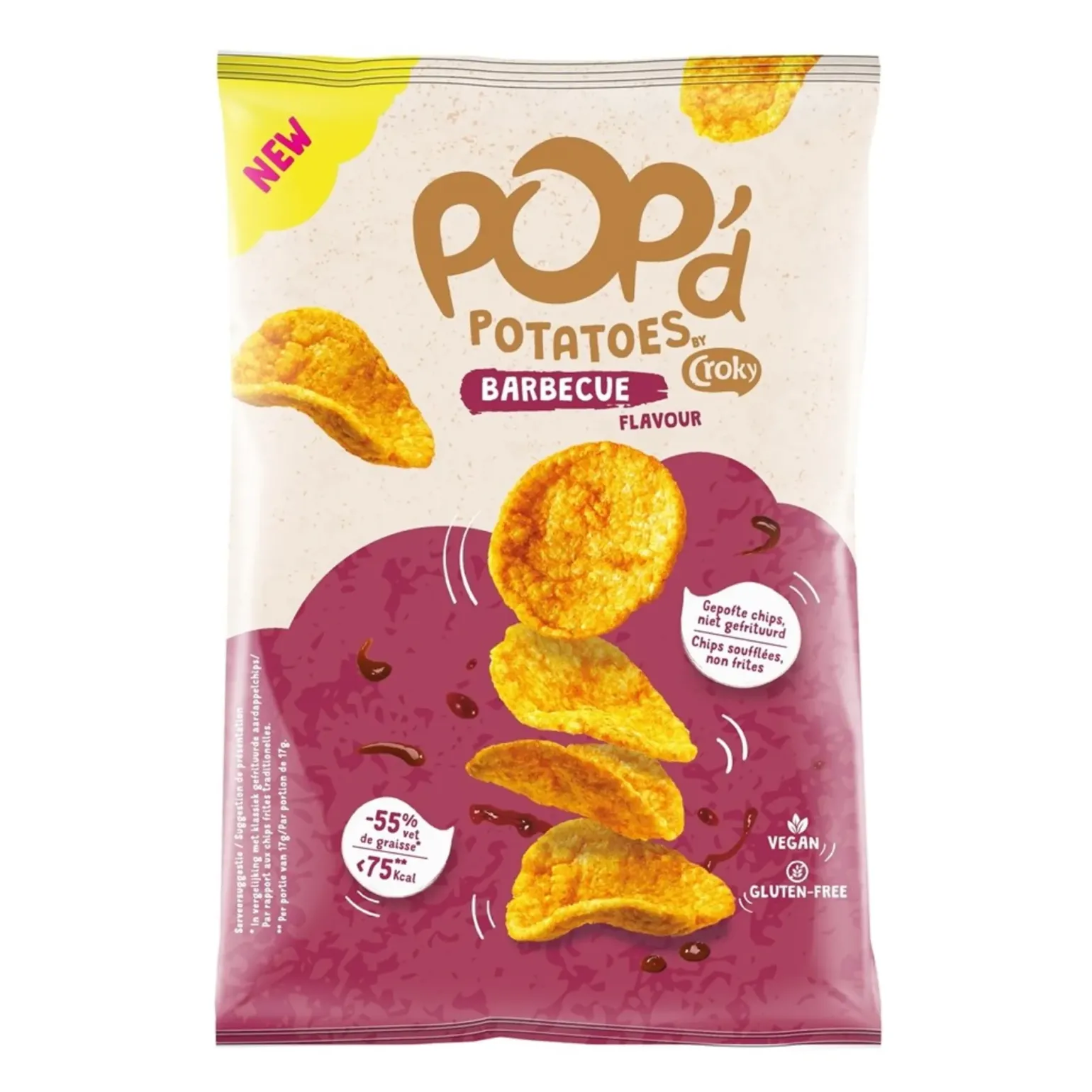Croky Pop’d Potatoes Barbecue is een heerlijk luchtig chipje en een verantwoordelijkere keuze dan normale chips. In tegenstelling tot gewone gefrituurde chips wordt de Croky Pop’d Potatoes gepoft onder hoge druk en daarna heerlijk gekruid. Hierdoor bevatten ze minder vet en calorieën dan gewone chips. De smaak van heerlijke barbecuekruiden zorgt voor een onweerstaanbaar lekkere smaak. Op Compliment.nl bestel je nu voordelig de Pop’d Potatoes Barbecue per 24 zakjes à 17 gram. Dat is dus genieten van een lekker, gepoft en verantwoord zoutje. Bekijk ook ons uitgebreide en voordelige assortiment voor nog meer lekkers!