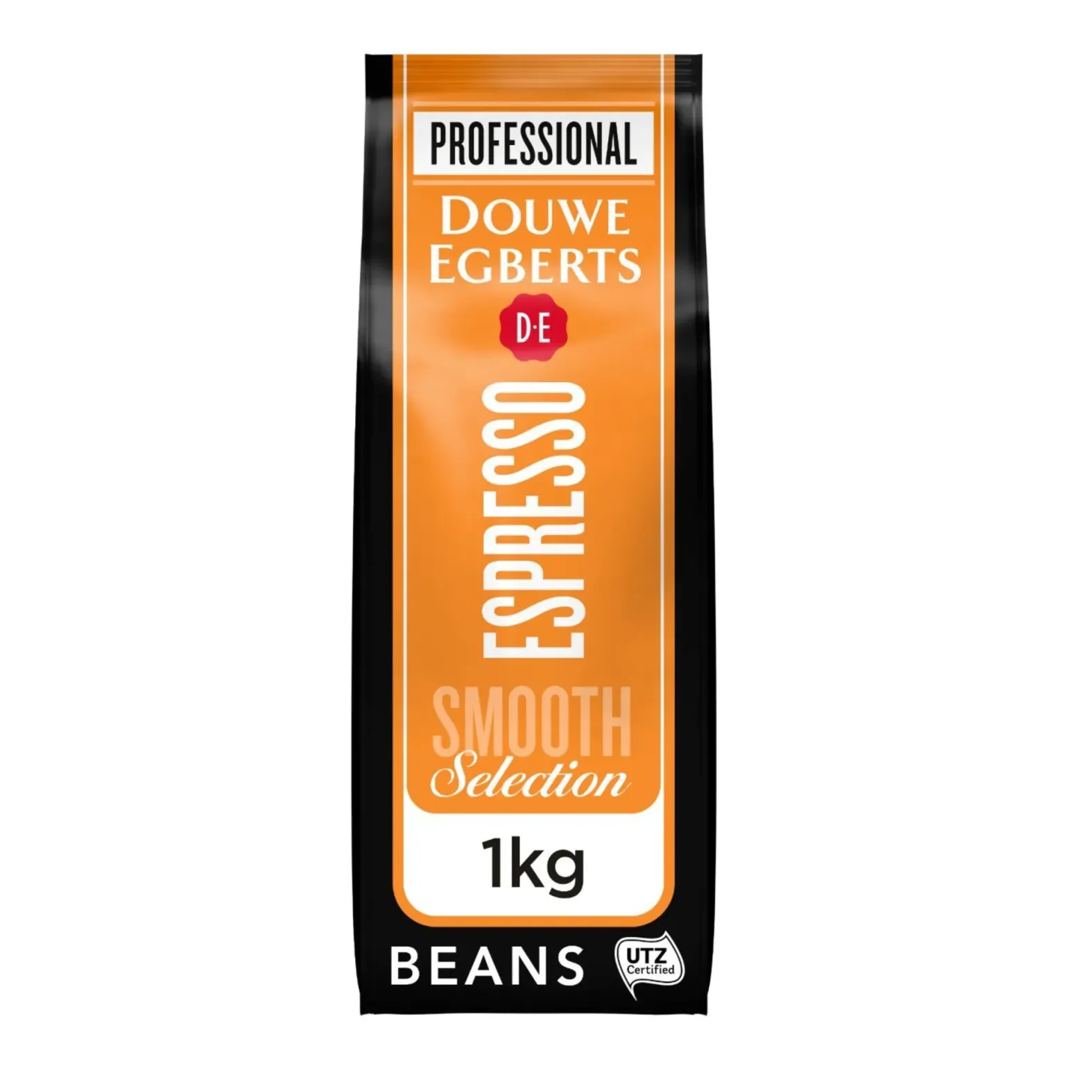 Ontdek de subtiele finesse van D.E. (Douwe Egberts) Espresso Smooth Selection. Deze milde blend van 100 % Arabica-bonen, afkomstig uit Centraal- en Zuid-Amerika, is medium roasted om een zachte, ronde smaak te leveren met een licht zoete afdronk. Perfect afgestemd op espresso, lungo en cappuccino — ideaal voor wie graag elke dag een verfijnd kopje koffie wil.