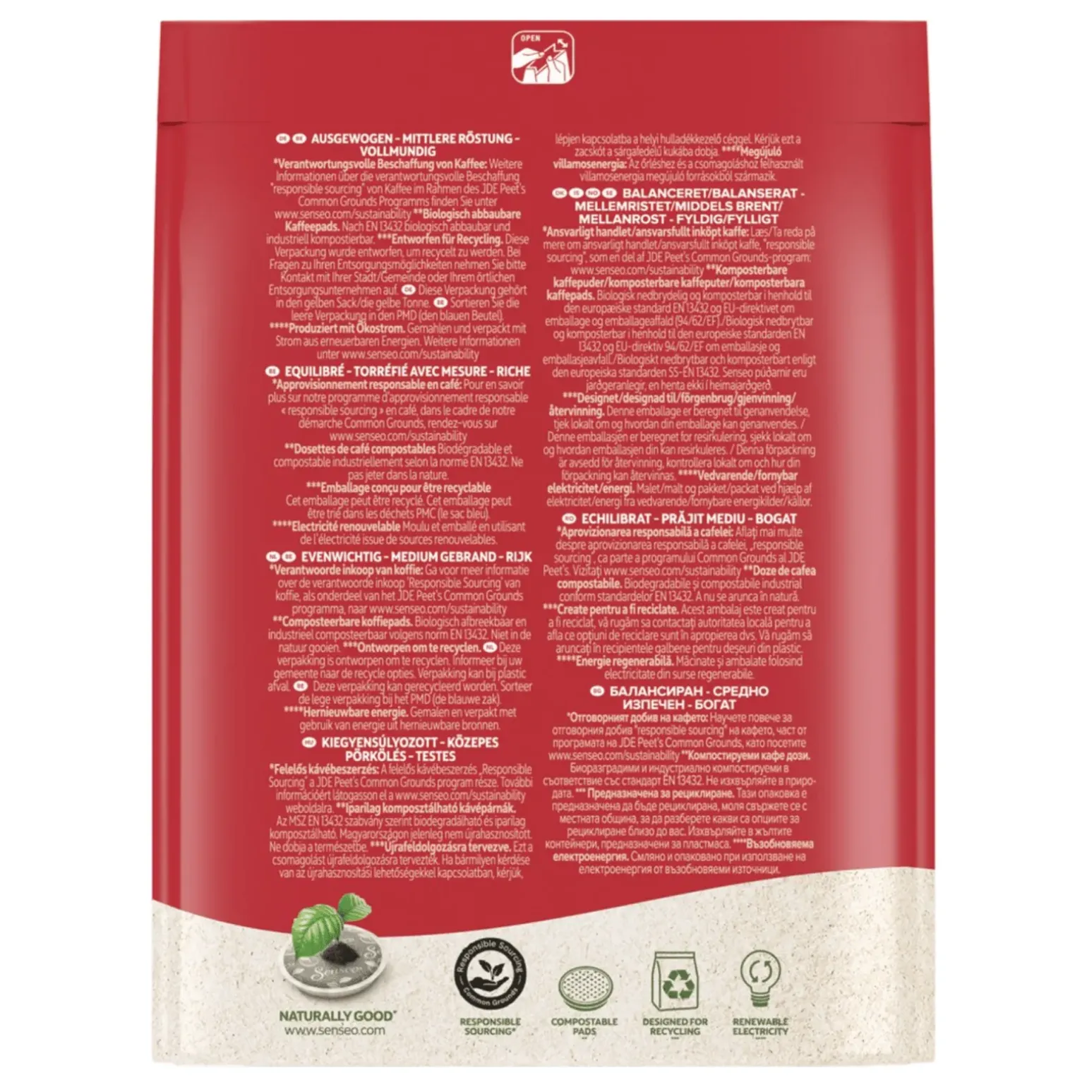 Geniet van de vertrouwde smaak van Douwe Egberts Senseo Koffiepads Regular. Deze pads zijn speciaal ontwikkeld voor het Senseo-systeem en bieden een perfecte balans tussen zachte mildheid en een volle koffiesmaak. Iedere kop koffie wordt gezet met een romige crema-laag, kenmerkend voor Senseo. De pads zijn gemaakt van 100% geroosterde en gemalen koffie, zonder toevoegingen, en zijn bovendien biologisch afbreekbaar: ze kunnen eenvoudig bij het GFT-afval worden weggegooid. Ideaal voor dagelijks gebruik, thuis of op kantoor.