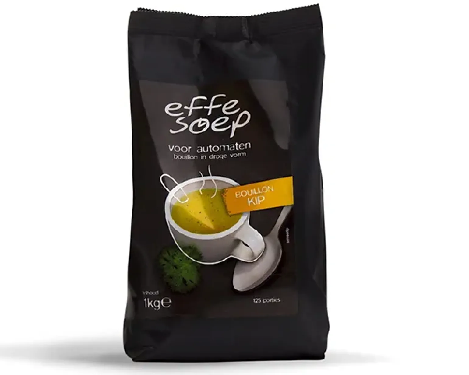 Heb je nog effe een boost nodig om de dag door te komen? Effe soep bouillon kip geeft je deze boost. Deze drinkbouillon heeft een laag zoutgehalte maar is vol van smaak. De bouillon is extra smaakvol door de toevoeging van peterselie, peper, selderij, kurkuma en witte peper. De Effe soep drinkbouillon kip is ideaal voor soepautomaten in bijvoorbeeld je bedrijfskantine op dorpshuis. Iedere zak bevat 1 kilo bouillon. Dat is goed voor maar liefst 125 porties! De automatenbouillon koop je altijd voordelig op Compliment.nl.