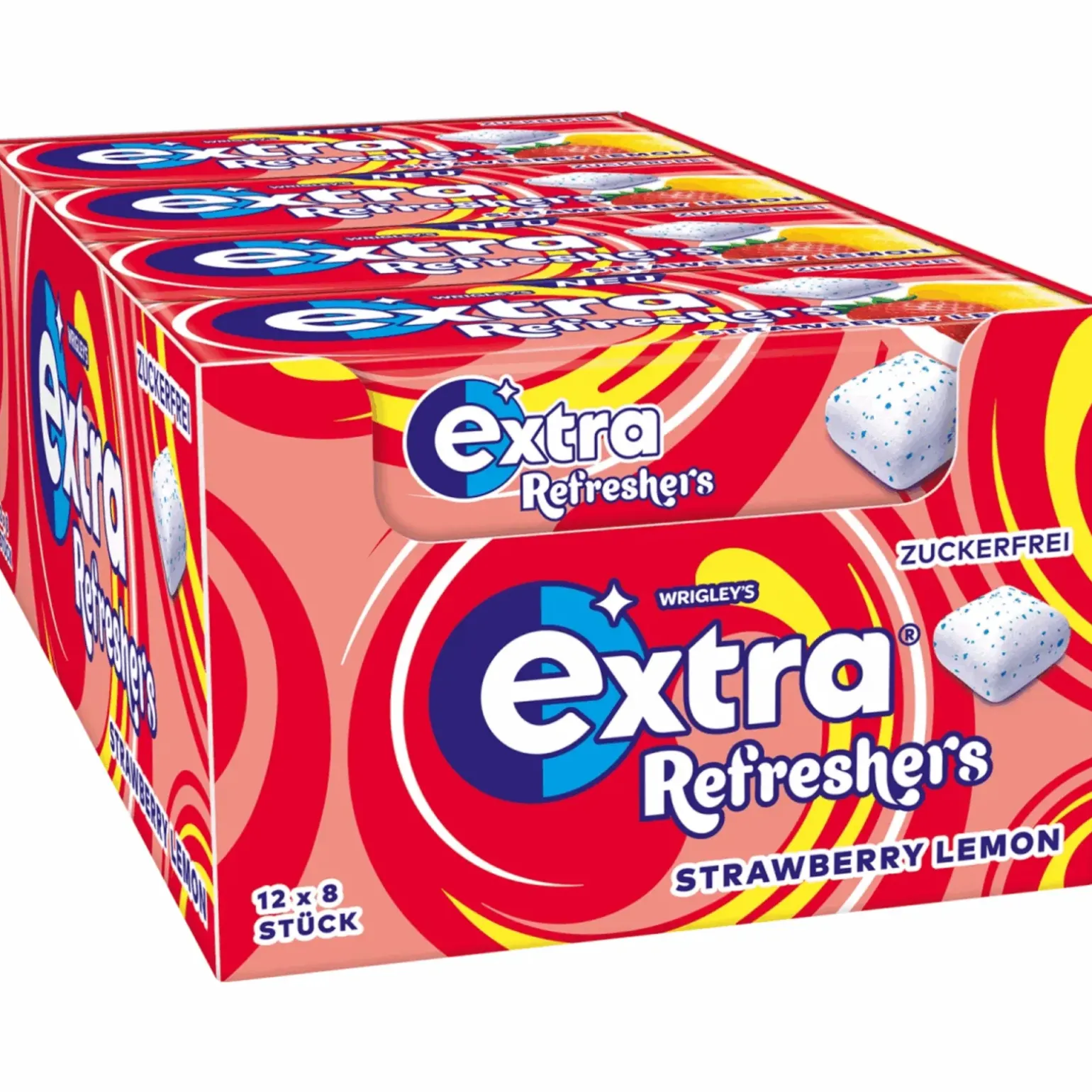 Bij Compliment.nl koop je voordelig Extra Refreshers Strawberry Lemon (12x 18g), een suikervrije kauwgom met een frisse combinatie van aardbei en citroen voor een fruitige smaakexplosie. Dankzij de crispy buitenlaag en de zachte kern geniet je van een lekkere bite en langdurige frisheid. Ideaal om je adem snel te verfrissen na een maaltijd of gewoon tussendoor. Suikervrij kauwen helpt om tandplakzuren te neutraliseren en draagt zo bij aan een goede mondgezondheid. Deze kauwgom is handig verpakt, zodat je hem gemakkelijk meeneemt naar werk, school of sport. Een heerlijke kauwgom die smaak, frisheid en tandverzorging combineert in één. Perfect om te delen of om zelf dagelijks van te genieten.