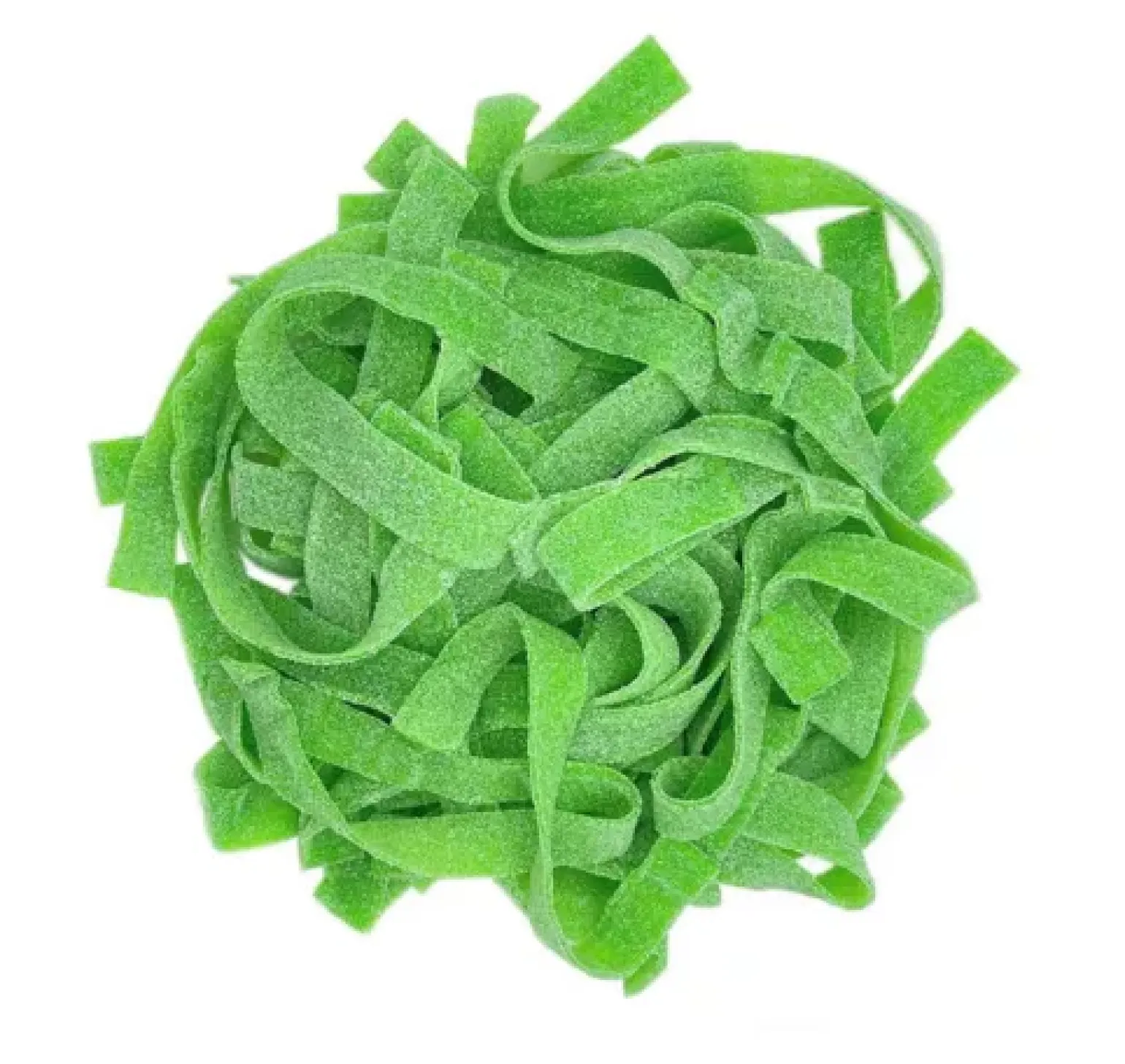 Ingrediënten: glucose-fructosestroop, suiker, TARWEBLOEM, maïszetmeel, voedingszuren (E270, E296, E330), geheel gehard palmvet, zuurteregelaars (E325, E331), zout, emulgator (E471), aroma’s, bevochtigingsmiddel (E422), kleurstoffen (E120, E133).
