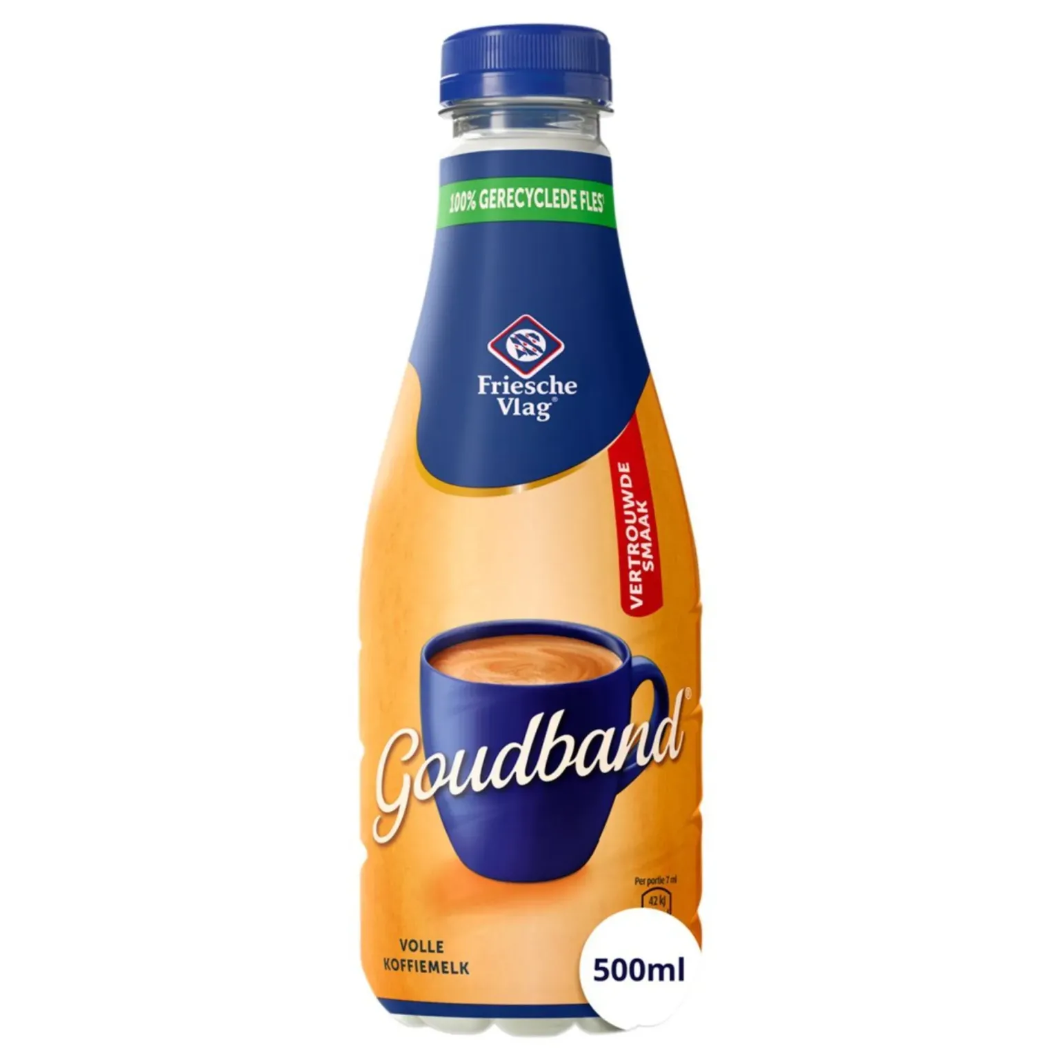 Met slechts een scheutje Friesche vlag goudband volle koffiemelk maak je jouw koffie lekker romig en zacht van smaak. Goudband koffiemelk wordt gemaakt van volle melk en is lang houdbaar. Gemaakt volgens traditioneel recept. Deze handige schenkfles goudband volle koffiemelk is ideaal voor plekken waar veel koffiemelk wordt gebruikt. Dus ideaal voor grootverbruikers zoals restaurants, cafés, buurthuizen en kantines. Deze volle koffiemelk zit een een flesje dat gemaakt is van 100% gerecycled plastic. Het flesje is ook weer volledig recyclebaar. Bovendien is de fles hersluitbaar waardoor je de koffiemelk na gebruik afgesloten kan bewaren. Hierdoor blijft de koffiemelk langer goed van smaak. Voordelig Friesche vlag goudband volle koffiemelk kopen doe je natuurlijk bij Compliment.nl. Je koopt Friesche vlag goudband volle koffiemelk per 12 flesjes van 500ml.