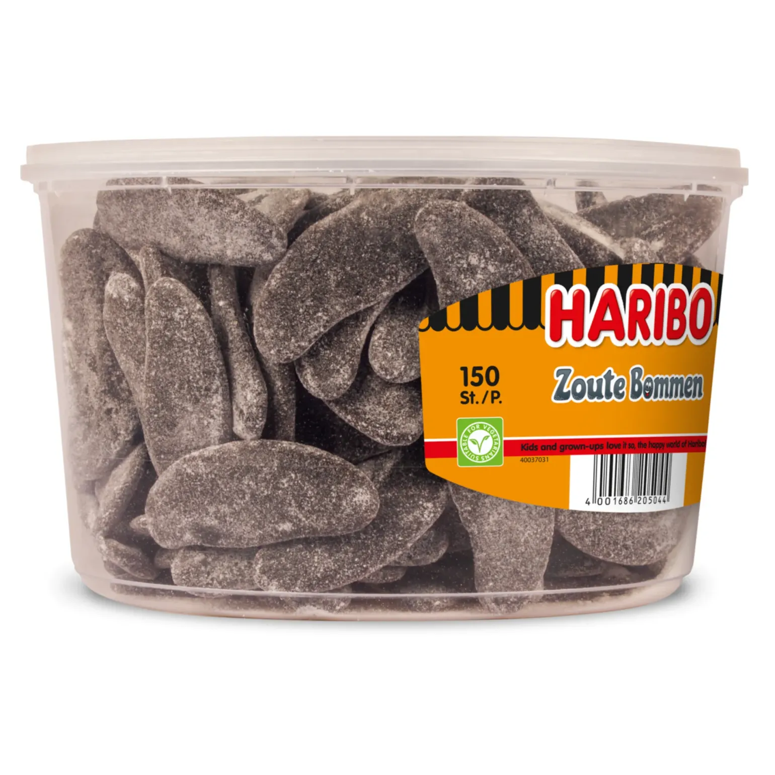 De Haribo Drop Zoute Bommen hebben een zacht en zoute smaak. De Zoute Bommen bevatten een lekker laagje zout. Deze drop is erg geliefd door jong en oud. In 1 silo zit 150 stuks Zoute Bommen.