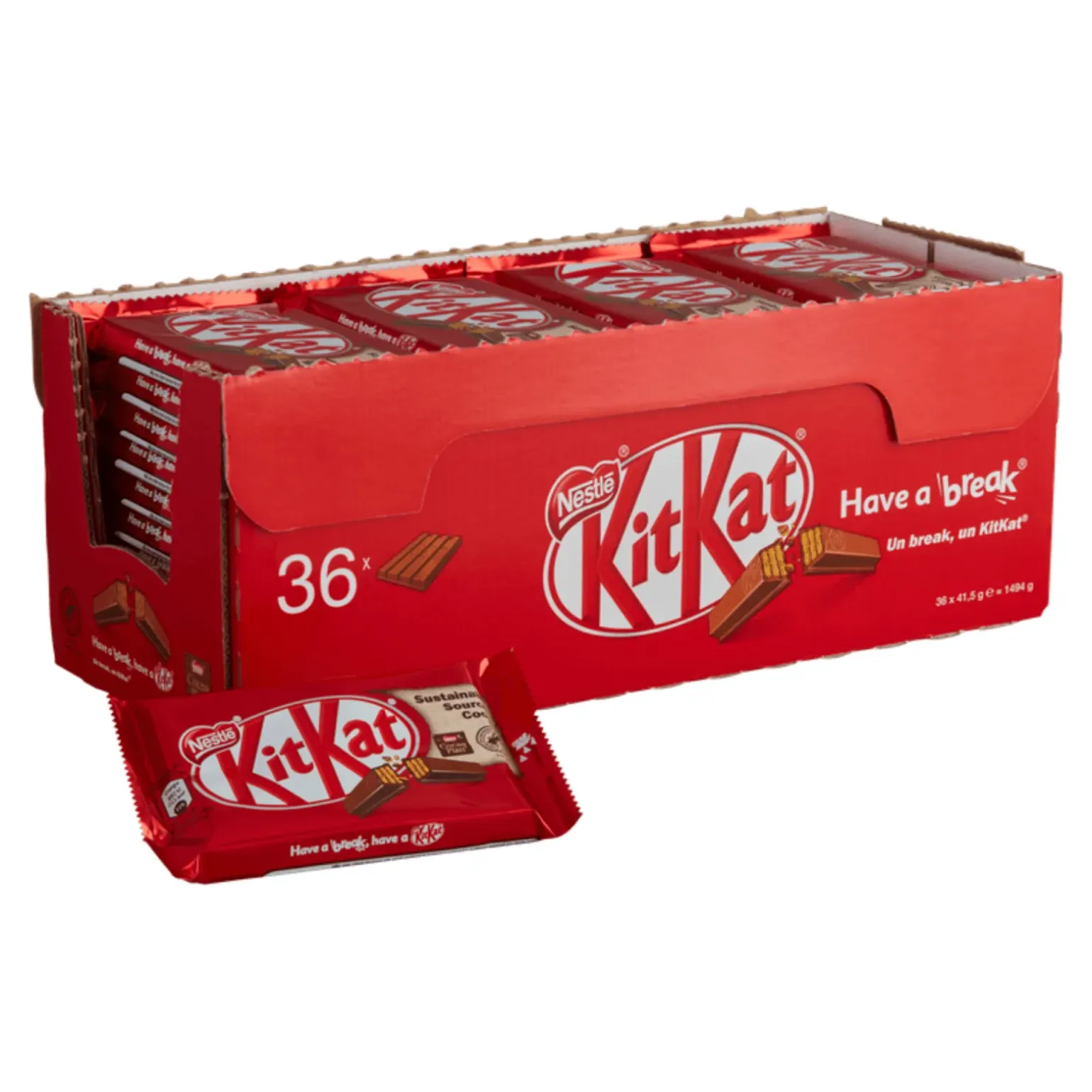 Tijd voor pauze? Dan is het tijd voor een ! Deze overheerlijke reep bestaat uit een combinatie van een krokante wafel en romige melkchocolade. Deze reep heeft 4 vingers, waardoor je deze reep ook kunt delen met vrienden, familie of collega’s. De reep is ideaal als tussendoortje, als traktatie of voor in de kantine. Op Compliment.nl bestel je nu eenvoudig en voordelig een displaydoos met 36 verpakte repen KitKat à 41.5 gram. Bij ons ben je ook aan het juiste adres voor vele andere zoals de