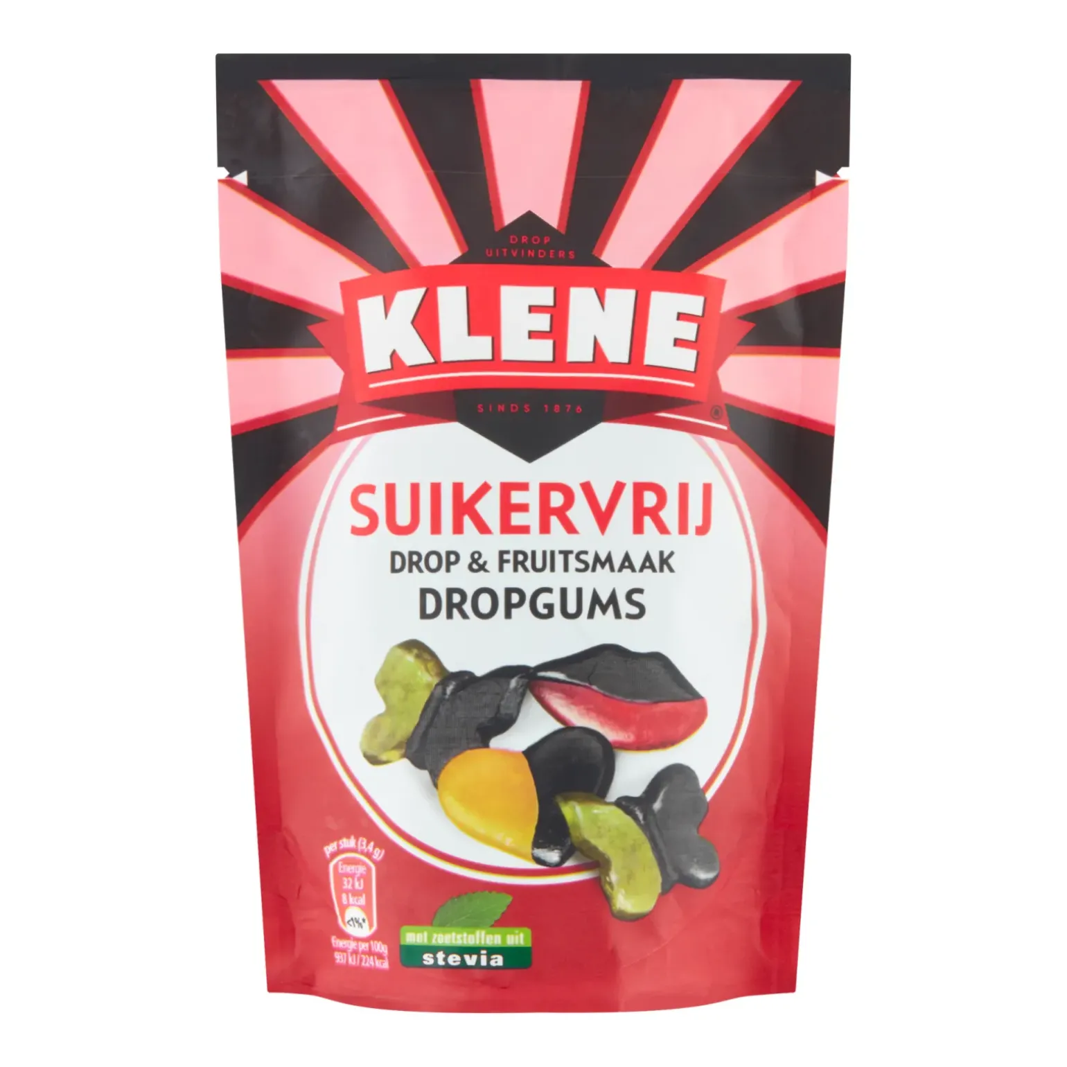Klene Dropgums suikervrij is een snoepje dat een combinatie is van drop en winegums. De rijke smaak van Klene drop, verrijkt met drie verrassende fruitsmaken: aardbei, limoen en banaan. Deze dropgums zijn gezoet met Stevia, dus suikervrij. Onbezorgd genieten dus. In een hersluitbare stazak, dus handig om mee te nemen onderweg, in de auto of gewoon thuis. Doordat de zak weer gesloten kan worden blijft de kwaliteit van de snoepjes langer goed en drogen de Klene dropgums niet uit. Voordelig Klene suikervrije dropgums kopen doe je bij online snoepgroothandel Compliment.nl. Je koopt Klene dropgums per doos met 12 zakjes van 110 gram.