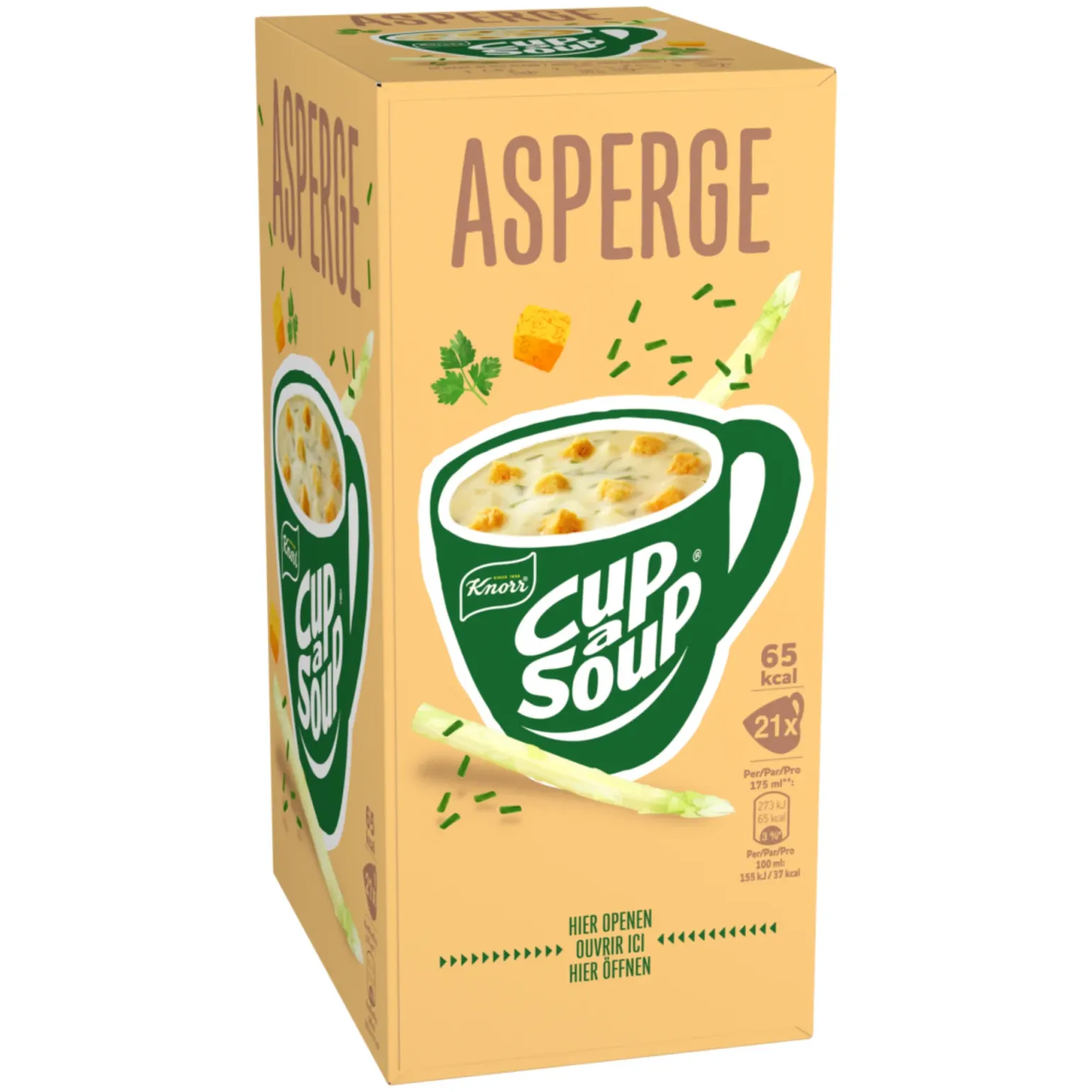 Knorr Cup-a-Soup Asperge (21x 175ml) is een romige instant moksoep met de zachte, verfijnde smaak van asperge. Ideaal voor een korte pauze op het werk of als snel warm tussendoortje thuis. Met de handige portiezakjes maak je in een minuut een mok soep: voeg simpelweg 175 ml kokend water toe en roer goed door. De soep heeft een milde, romige smaak en is daardoor een toegankelijke keuze voor liefhebbers van lichte groentesoepen. De doos bevat 21 zakjes, wat hem geschikt maakt voor kantines, vergaderruimtes of als praktische voorraad op kantoor.
