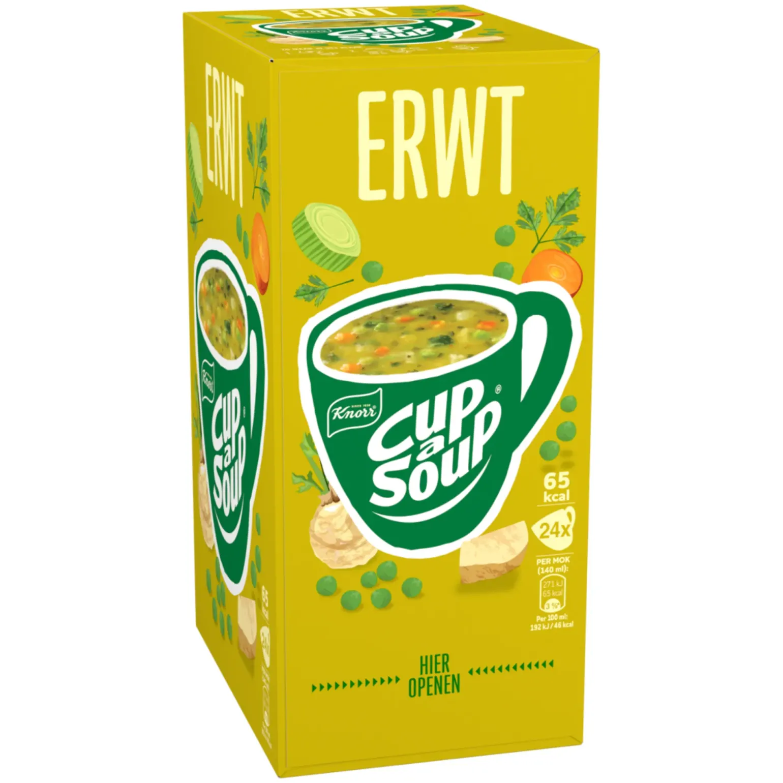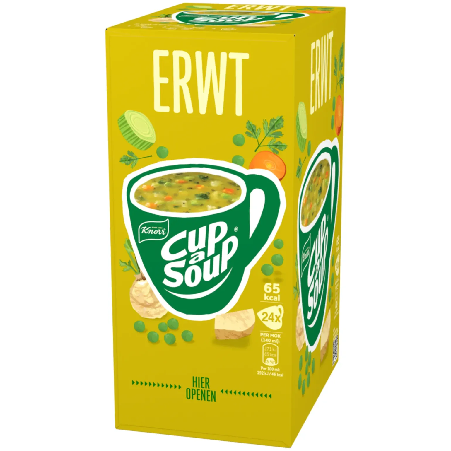 Knorr Cup-a-Soup Erwt is een hartige soep met de herkenbare smaak van erwt. Deze soep is snel en eenvoudig te bereiden door heet water toe te voegen, waardoor hij perfect is voor een korte pauze. De smaak is mild en toegankelijk, waardoor hij bij veel mensen in de smaak valt. Deze verpakking bevat 24 porties van 140 ml en is daardoor zeer geschikt voor kantoor, kantines en andere plekken waar meerdere mensen gebruikmaken van de pantry. De porties zijn individueel verpakt, wat zorgt voor gemak en hygiëne. Een praktische keuze voor wie snel wil genieten van een warme soep zonder gedoe.