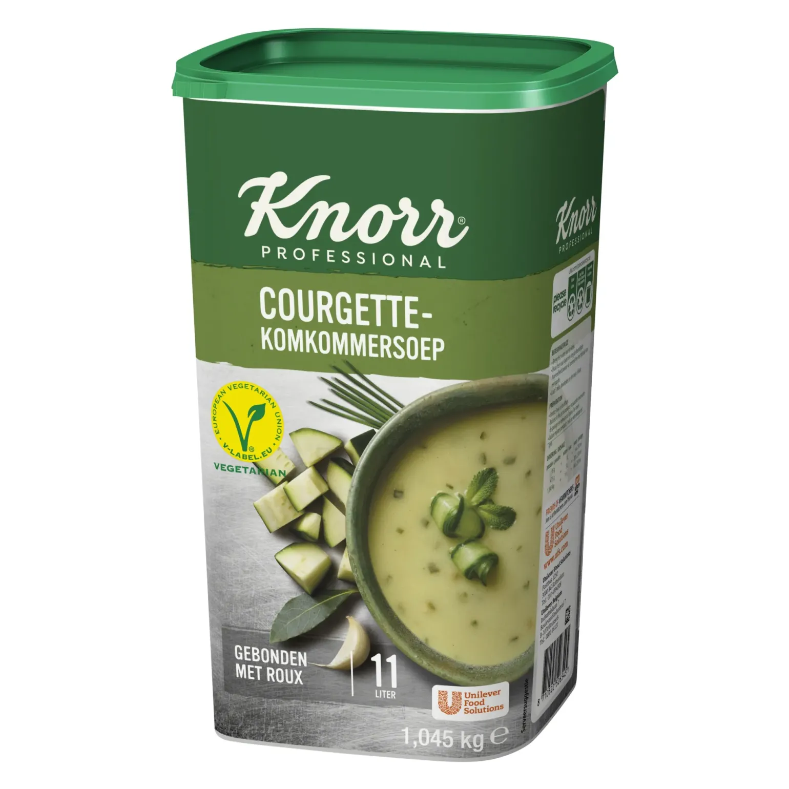 Een romige soep met de smaak van courgette en komkommer. Er kan met deze bus 11 liter soep gemaakt worden. Er zit 1,045 kg in een bus.