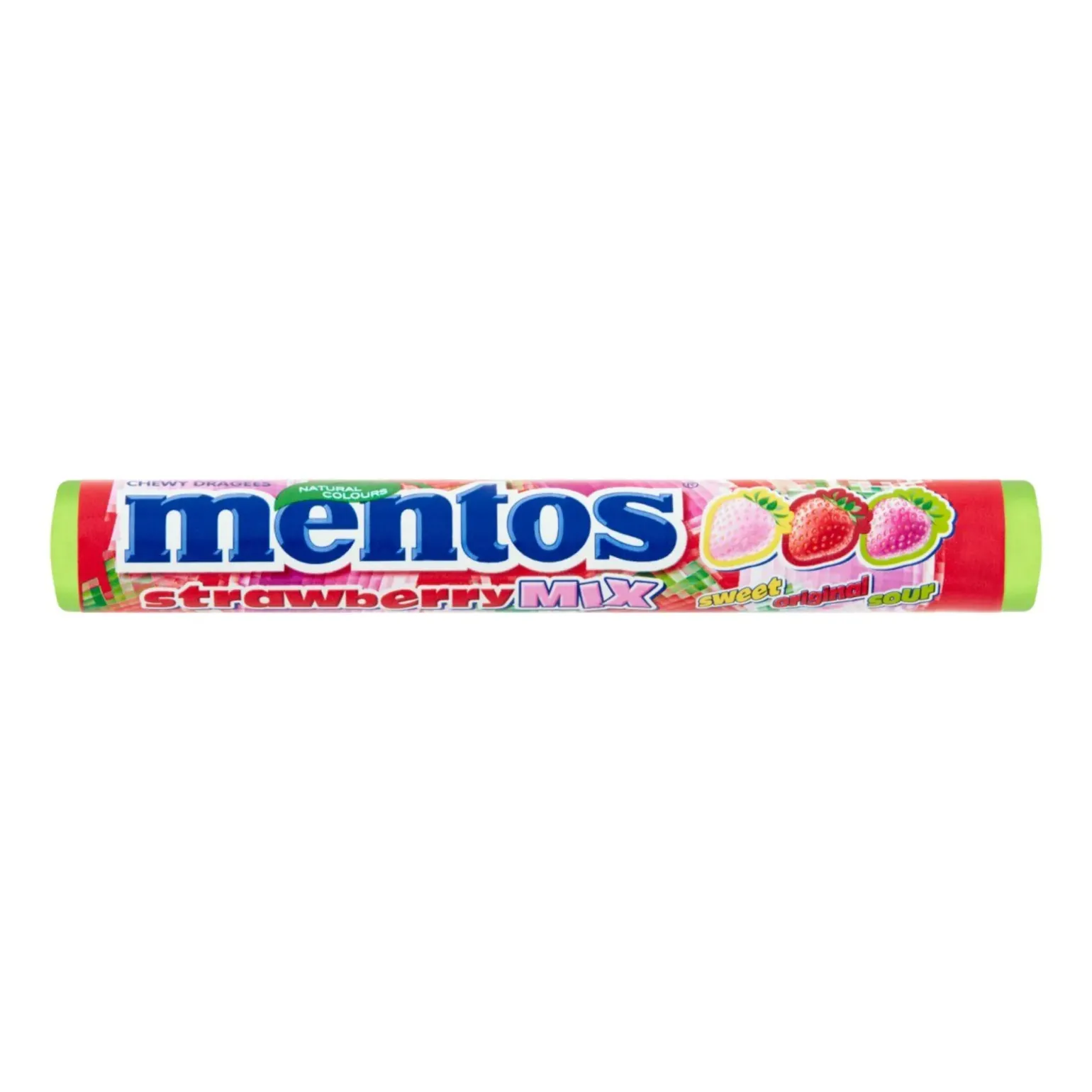 De Mentos Strawberry Mix rol bestaat uit 40 rollen Mentos met een mix van aardbei-varianten, herkenbaar door de knapperige buitenkant en zachte binnenkant. Deze fruitige rollen zijn populair bij een breed publiek en ideaal voor verkoop bij de kassa, in kantines of voor uitdeling. Dankzij de individuele rolverpakking zijn ze makkelijk mee te nemen en perfect voor impulsmomenten. Een vertrouwde Mentos-klassieker met een duidelijk fruitig karakter.