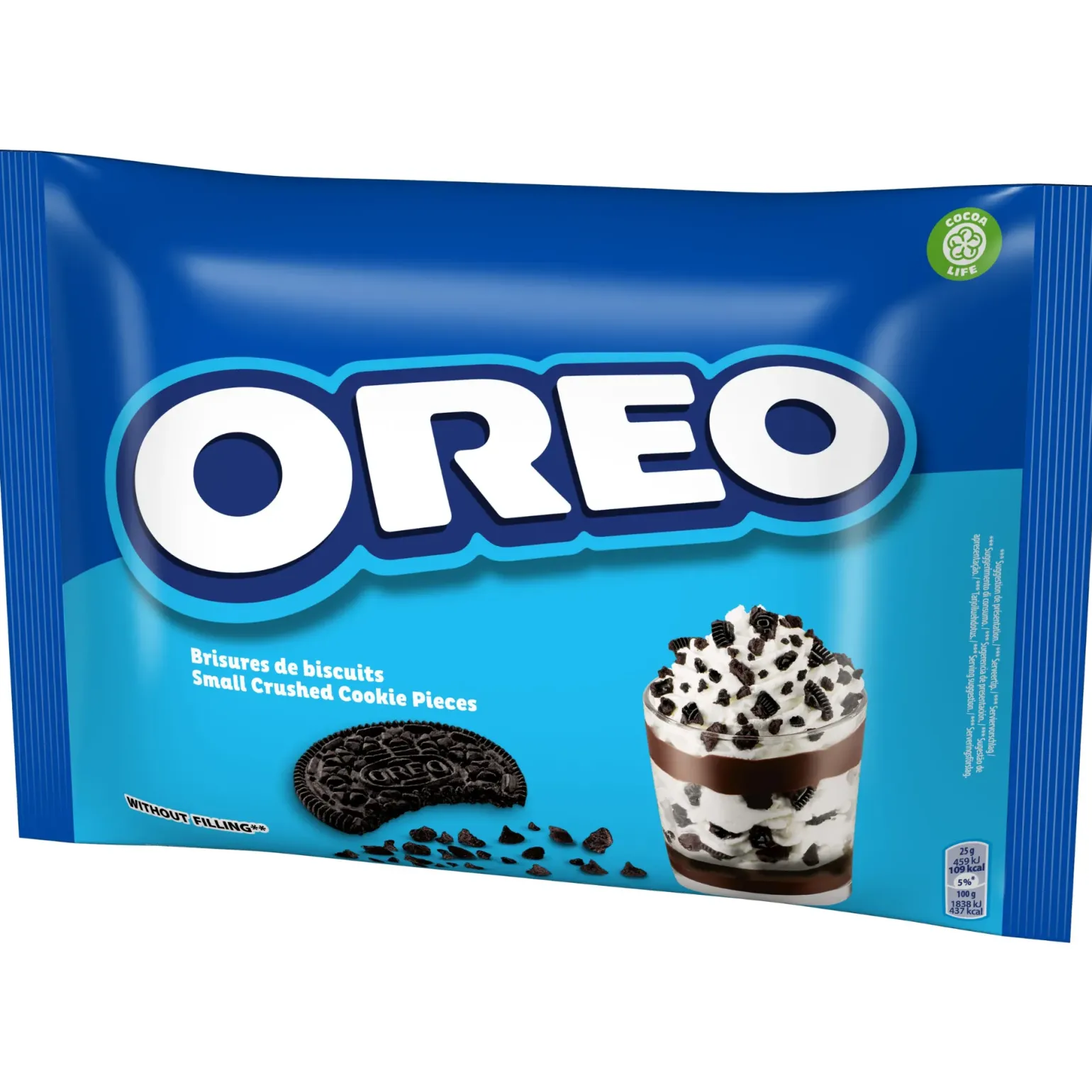 Deze Oreo kruimels zonder crème bevatten alleen de originele cacaokoekjes – knapperig, intens van smaak en perfect als topping of bodem voor taarten, ijs of milkshakes. Dankzij de afwezigheid van vulling blijven de kruimels droog en stevig. Gebruiksklaar en ideaal voor professioneel en creatief gebruik.