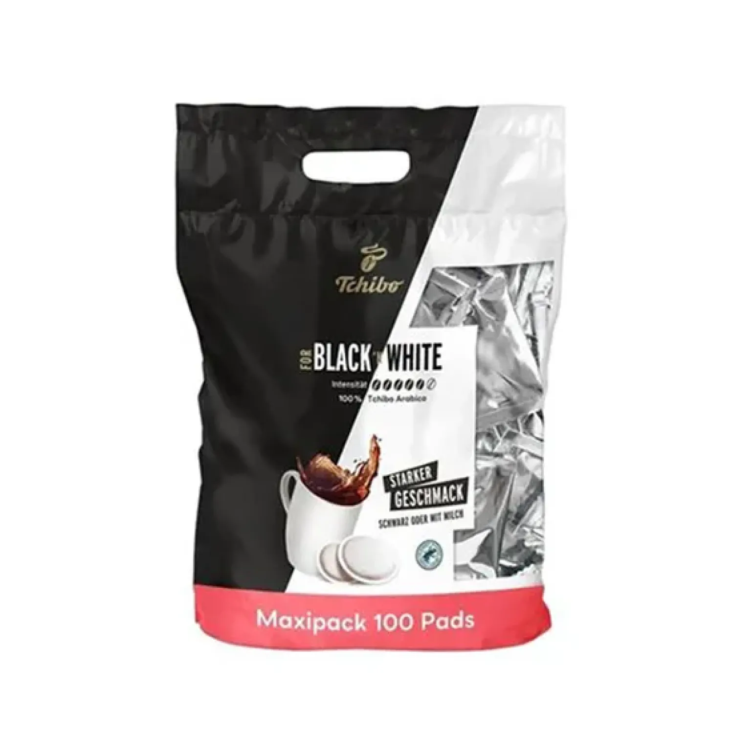 Tchibo Black n White 100 Pads is een koffie gemaakt van 100% Arabica-bonen, langzaam gebrand voor een rijke smaak met lage zuurgraad. De koffie heeft een smaakintensiteit van 5/6 en biedt een krachtig aroma dat zowel zwart als met melk goed tot zijnrecht komt. Deze koffiepads zijn geschikt voor alle gangbare padmachines, waaronder Senseo-apparaten. Ideaal voor wie houdt van een evenwichtige, aromatische kop koffie met een zachte crema en krachtige afdronk.