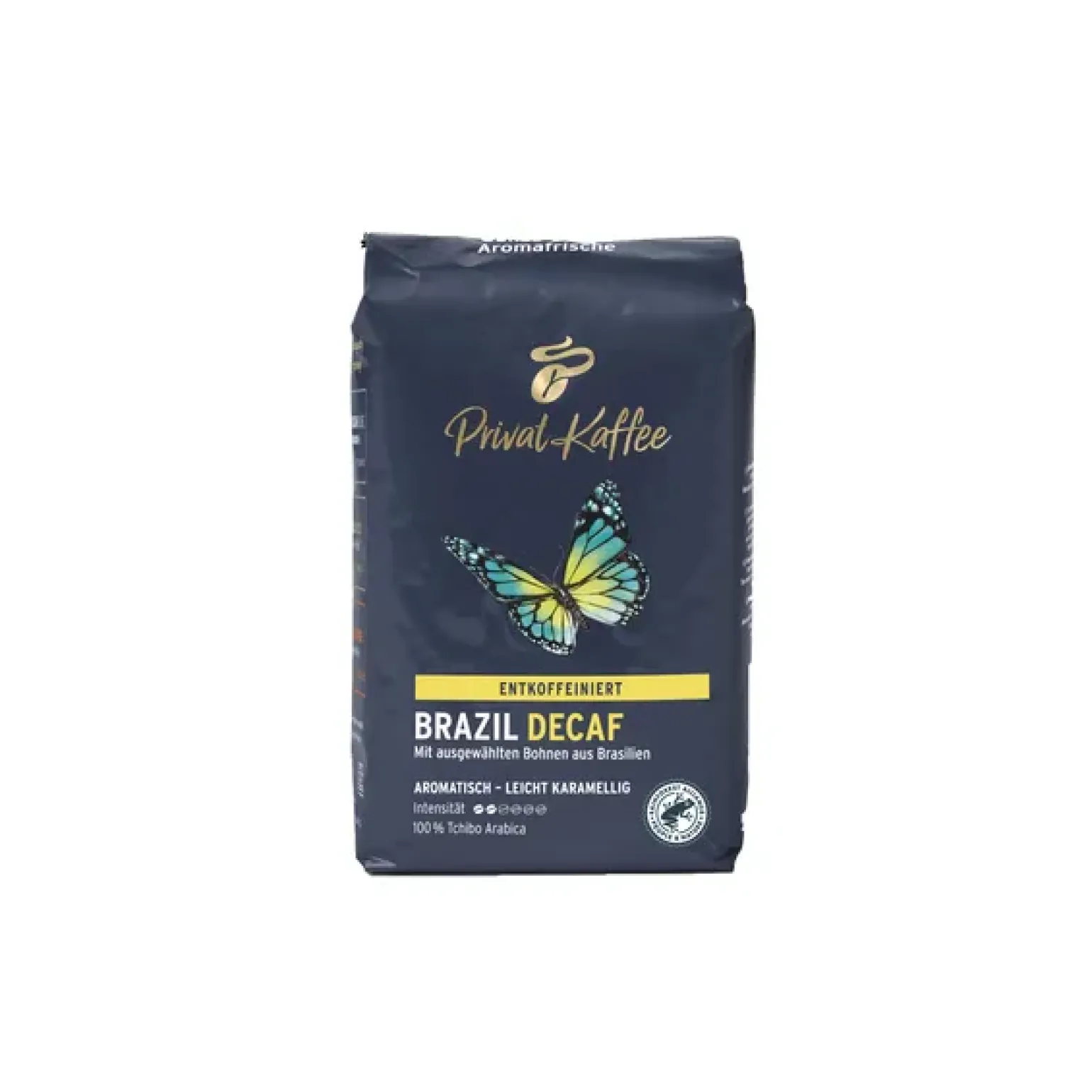 Tchibo Brazil Mild Decaf 500g is samengesteld uit 100% Arabica-bonen uit de Braziliaanse regio Minas Gerais. De bonen zijn mild gebrand en leveren een koffie met zachte tonen van karamel. Deze cafeïnevrije variant heeft een smaakintensiteit van 2/6,wat zorgt voor een lichte koffiesmaak. Geschikt voor alle koffiebonenautomaten, waaronder volautomatische en halfautomatische espressomachines. Ideaal voor wie wil genieten van een milde koffie zonder cafeïne, geschikt voor het bereiden van een cafécrema of een zachte espresso.