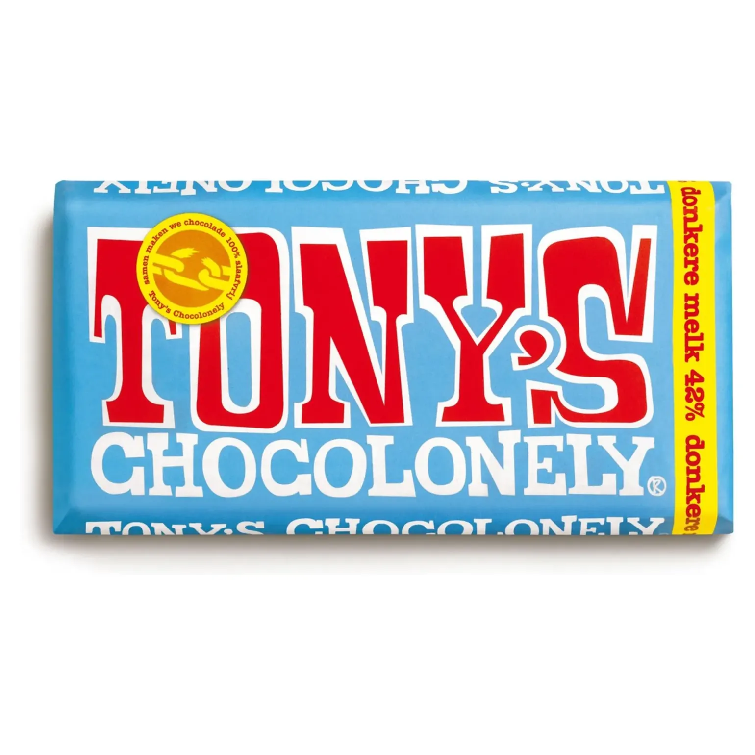 Vind je melkchocolade te zacht en pure chocolade te bitter? Tony’s Chocolonely heeft met de donkere melk reep de gulden middenweg gevonden. Tony’s donkere melk is een reep van donkere melkchocolade met de smaak van pure chocolade. Met 42% cacao! Heerlijk bij een warme drank of om tussen de bedrijven door stiekem van te genieten! Deze verrukkelijke reep is immers te lekker om te delen. De Tony’s Chocolonely donkere melk kan ook goed gebruikt worden bij diverse bakrecepten, zoals chocolate chip cookies. De afmeting van een reep is 8cm x 16cm. Tony’s Chocolonely donkere melk koop je voordelig op Compliment.nl per doos met 15 repen van 180 gram. Bekijk ons assortiment aan Tony’s Chocolonely smaken en ontdek welke jouw favoriet is.