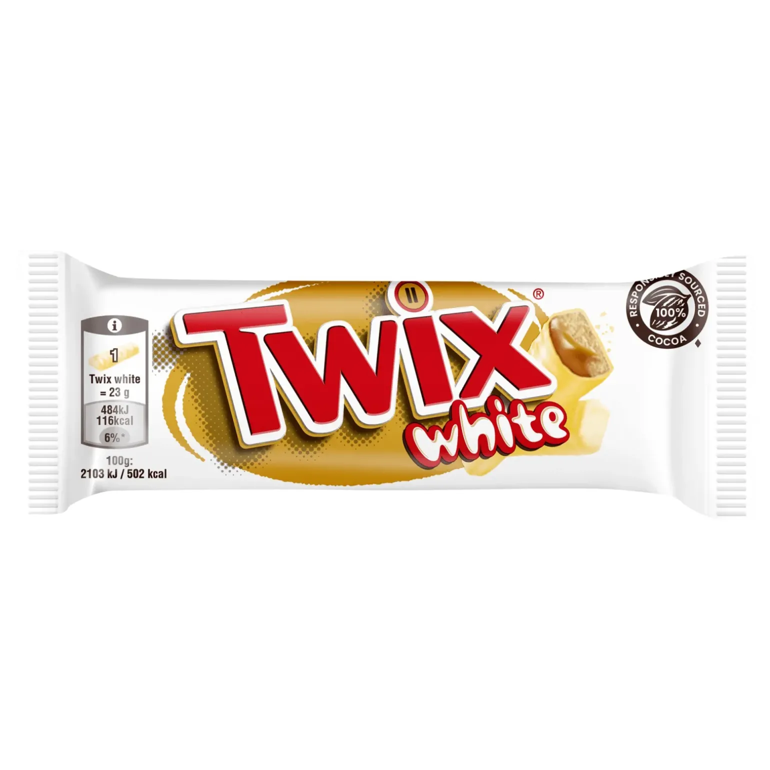 Always look at the white side of life! Twix white is de bekende Twix maar dan omhuld met romige witte chocolade. Samen met de krokante biscuit (26%) en de zoete karamel (32%) zorgt de witte chocolade (35%) voor een hele nieuwe smaakbeleving van deze klassieker. Twix white is een heerlijk tussendoortje onderweg, mee naar het werk of mee naar school. Het is dan ook niet voor niets dat je Twix white op steeds meer plekken ziet: in kantines, pompshops, snoepwinkels en in snoepautomaten en vendingmachines. Deze heerlijke candybar met witte chocolade is een blijvertje! voordelig Twix white kopen doe je natuurlijk bij online snoepgroothandel Compliment.nl. Je koopt Twix white per doos met 32 stuks.