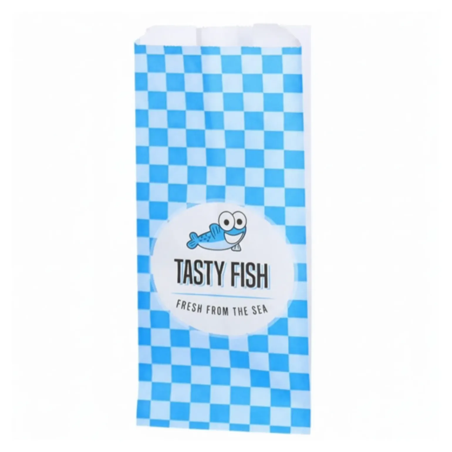- Stevige papieren viszak met frisse blauwe Tasty Fish-opdruk