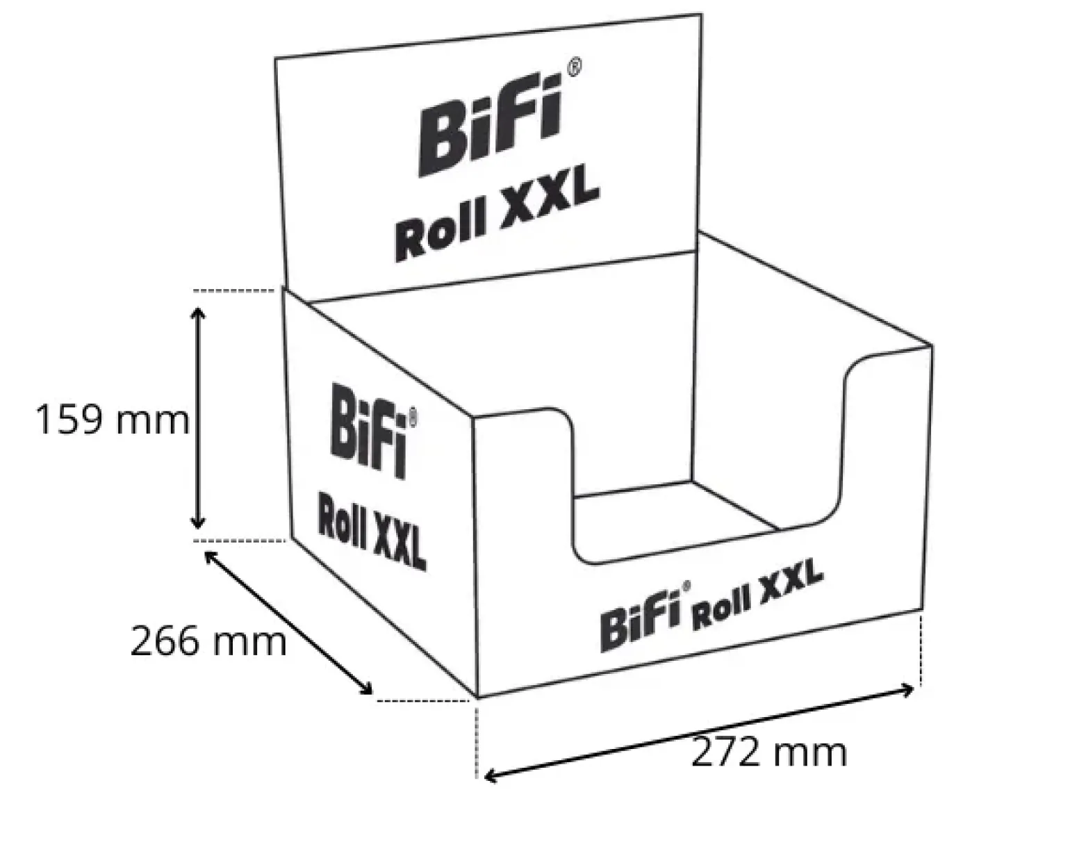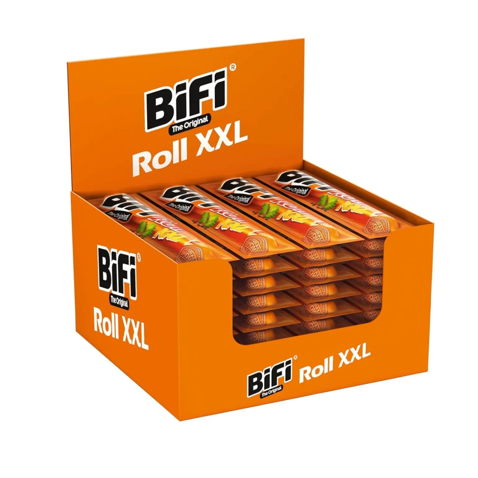 Bifi Roll XXL is de ideale snack voor onderweg. De bekenden Bifi worst maar dan verpakt in een zachte broodrol en extra groot. In een verpakking zitten 24 wikkels van 70 gram. Doordat elk Bifi worst apart verpakt is, is het gemakkelijk mee te nemen in de auto, naar het werk of in de rugzak naar school. De Bifi gerookte worst wordt gemaakt van hoogwaardig varkensvlees en rundvlees. Deze snack worstjes zijn ook erg populair tijdens een borrel of feestje en worden veel verkocht in kantines, tankstations en buurthuizen.