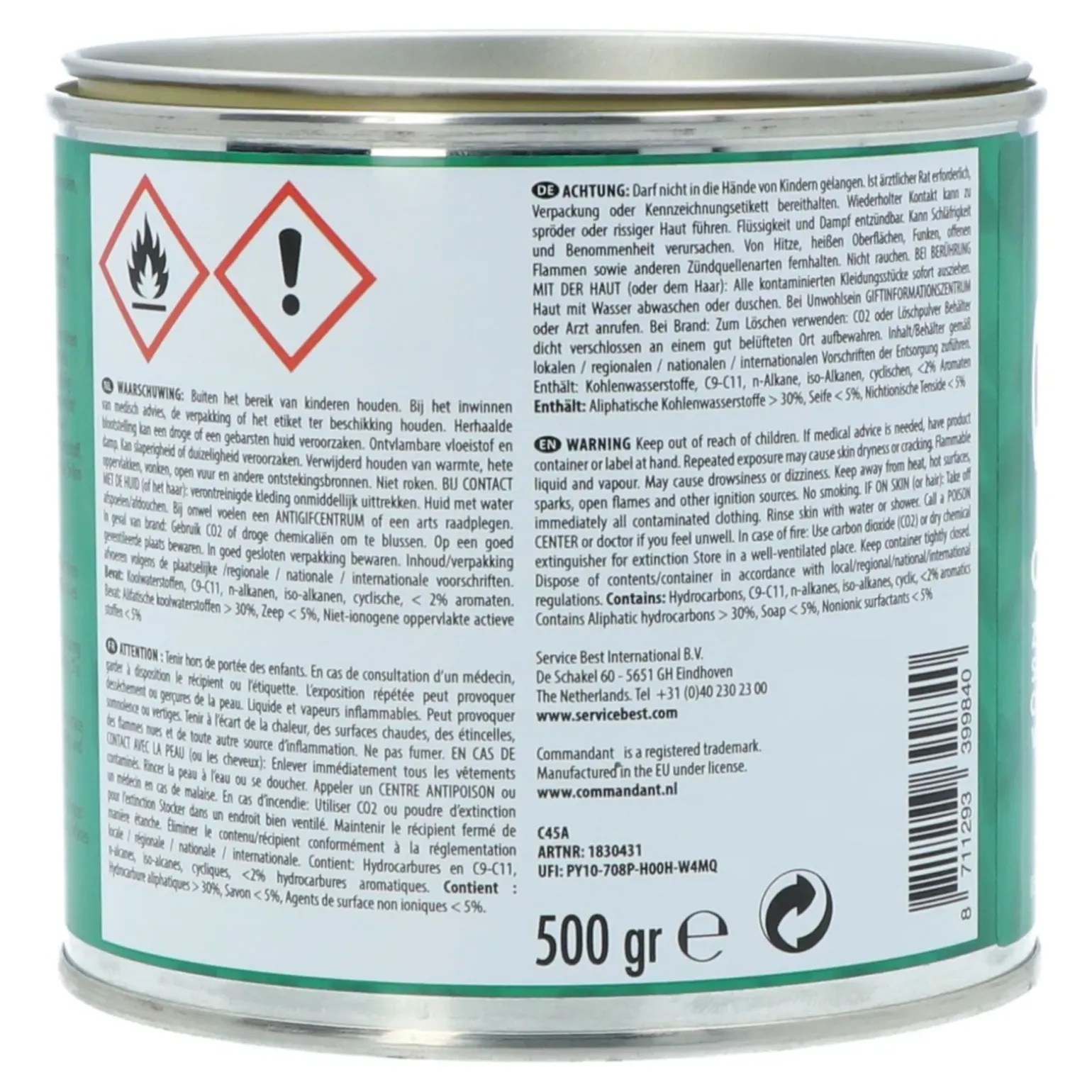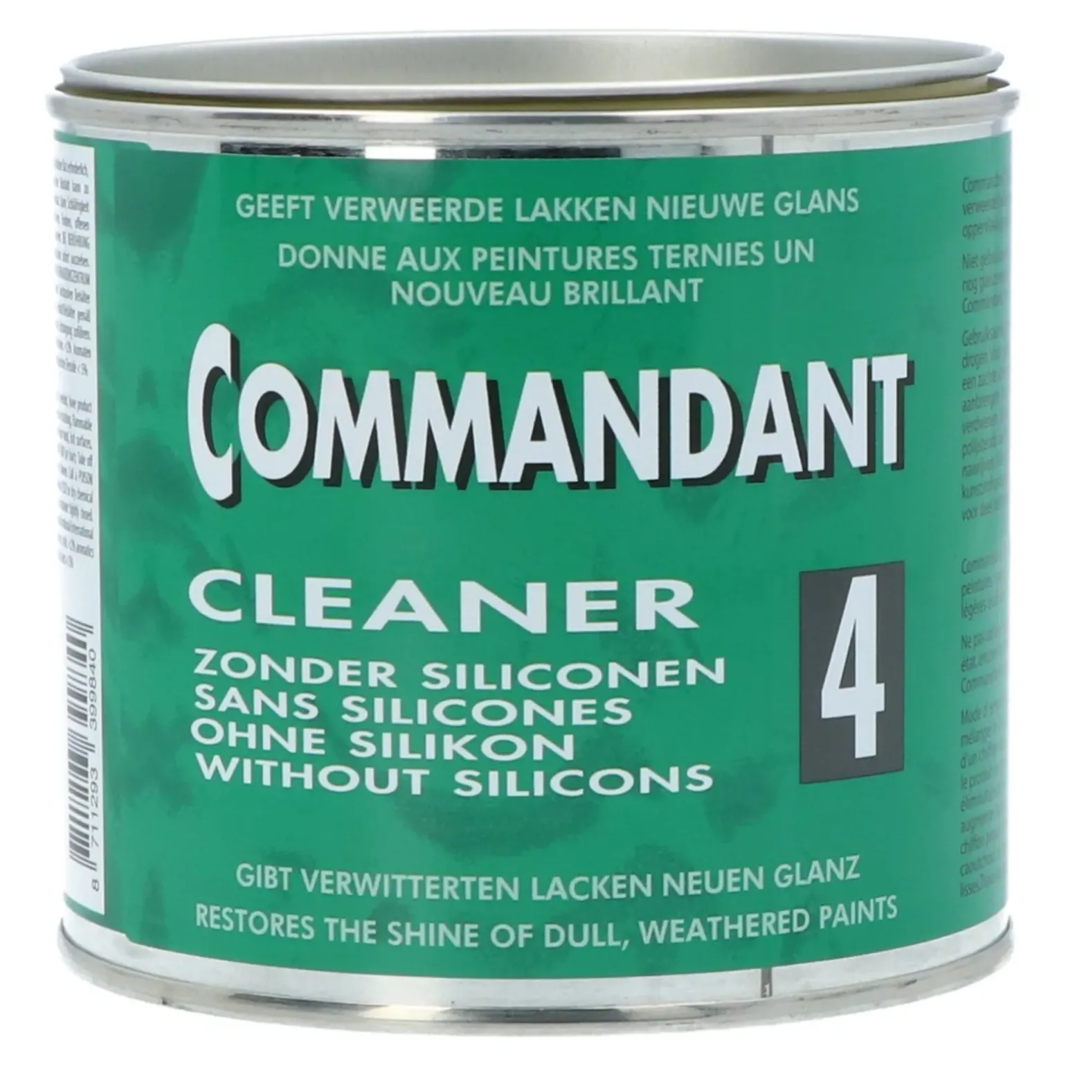 De Commandant Cleaner No. 4 is al decennia de vertrouwde standaard voor het herstellen van glans op diverse oppervlakken. Dit krachtige polijstmiddel in het iconische groene blik is speciaal ontwikkeld om verweerde lak en doffe plekken, ontstaan door UV-straling of weersinvloeden, weer tot leven te wekken. Of het nu gaat om het wagenpark op de werkvloer, de caravan in de stalling of een verwaarloosde machinebehuizing; deze cleaner biedt een grondige dieptereiniging zonder siliconen. Dankzij de verfijnde slijpende werking verdwijnen lichte krasjes en lakfouten als sneeuw voor de zon, wat resulteert in een gladde en egale basis.
