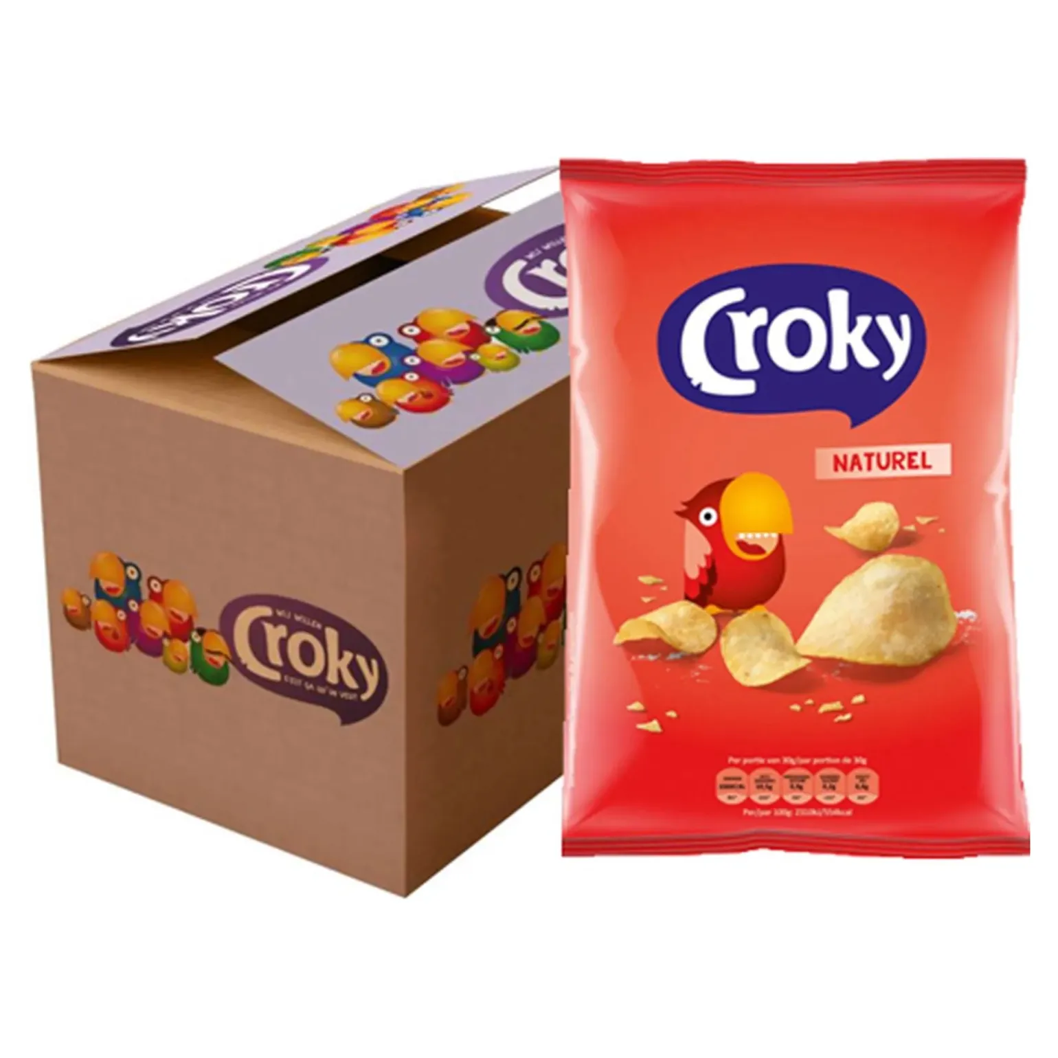 Croky Naturel chips zijn heerlijke aardappelchips met een zoute smaak. Gebakken in zonnebloemolie en hierdoor heerlijk knapperig. Het idee is simpel, maar de smaak verveelt nooit. Bij Compliment.nl snappen we dan ook maar al te goed dat dit de favoriet is van velen. Croky naturel chips is glutenvrij en helemaal vegan. De smaak is met recht een echte klassieker te noemen. Voordelig online Naturel chips 12 x 100 gram kopen doe je natuurlijk bij online groothandel Compliment.nl. Bekijk ook ons uitgebreide en voordelige assortiment voor nog meer lekkers!
