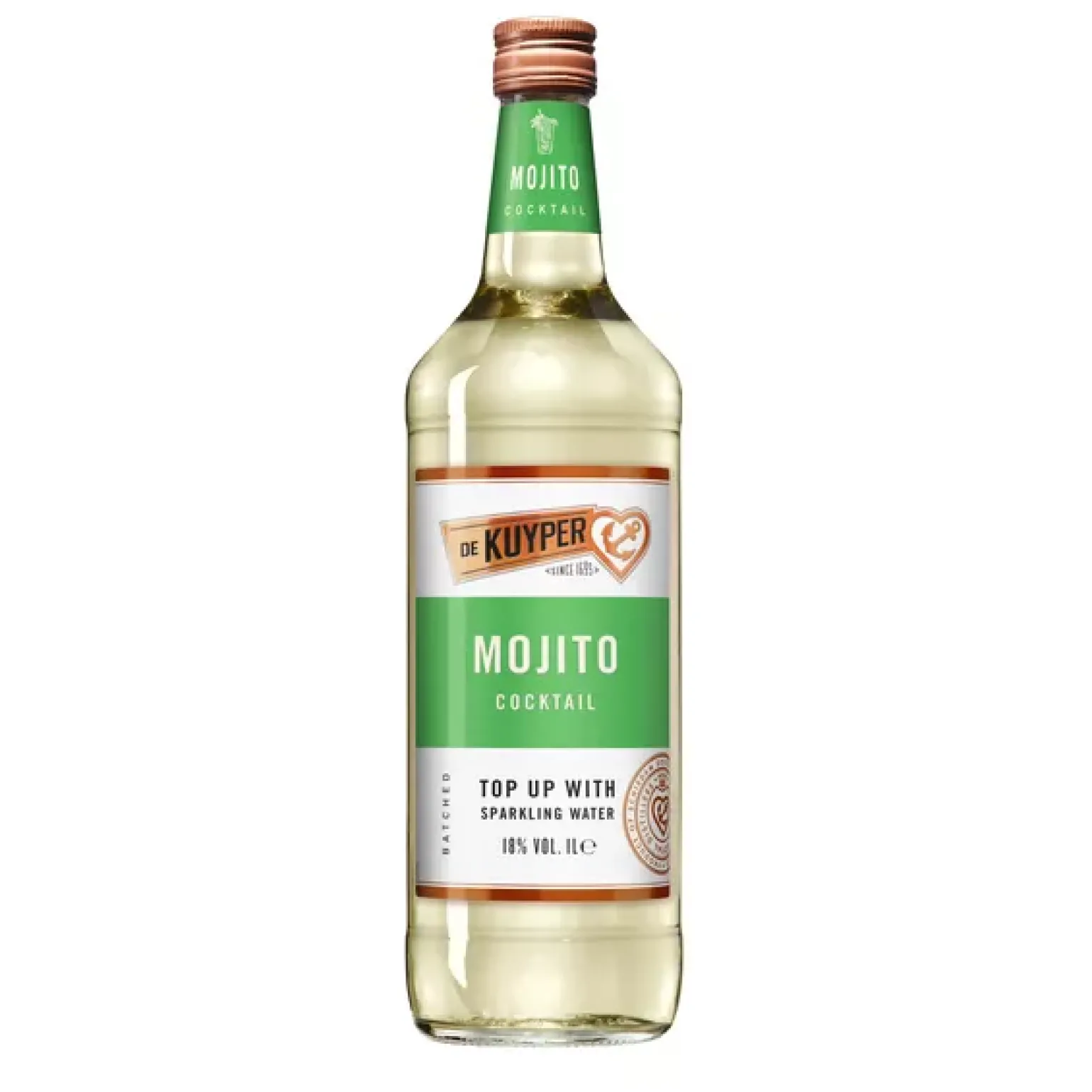 De Kuyper is ’s werelds grootste cocktaillikeurenmerk. Meest populaire cocktail wereldwijd. Makkelijk & snel te maken: alleen aftoppen met bruisend water. Verfrissende limoen, munt cocktail. 10 Cocktails per fles.