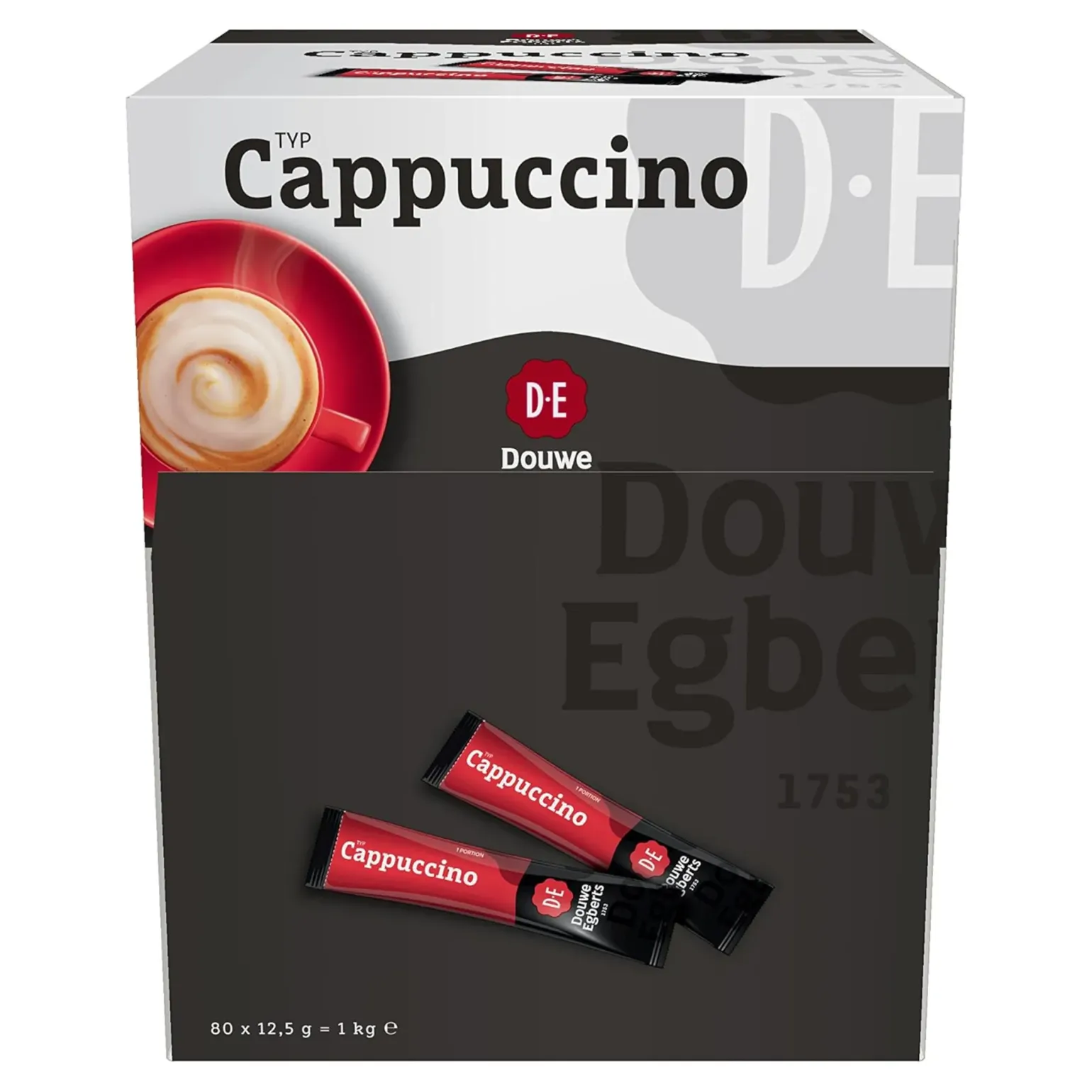 De Douwe Egberts cappuccino sticks zorgen voor een echte Italiaanse koffie met een heerlijke schuimlaag op elk kopje koffie. De praktische dispenserdoos bevat 80 sticks waarmee u eenvoudig op elk tijdstip een lekkere cappuccino kunt maken. De inhoud van één stick is 9,5 gram hetgeen goed is voor 125 ml cappuccino. Doordat de per stuk verpakte oploskoffie in een handige displaydoos zitten kan je deze mooi presenteren naast de koffiemachine in jouw kantine, restaurant of wachtruimte. Douwe Egberts cappuccinosticks koop je natuurlijk voordelig per dispenserdoos met 80 cappuccinosticks van 9,5 gram bij online groothandel Compliment.nl.