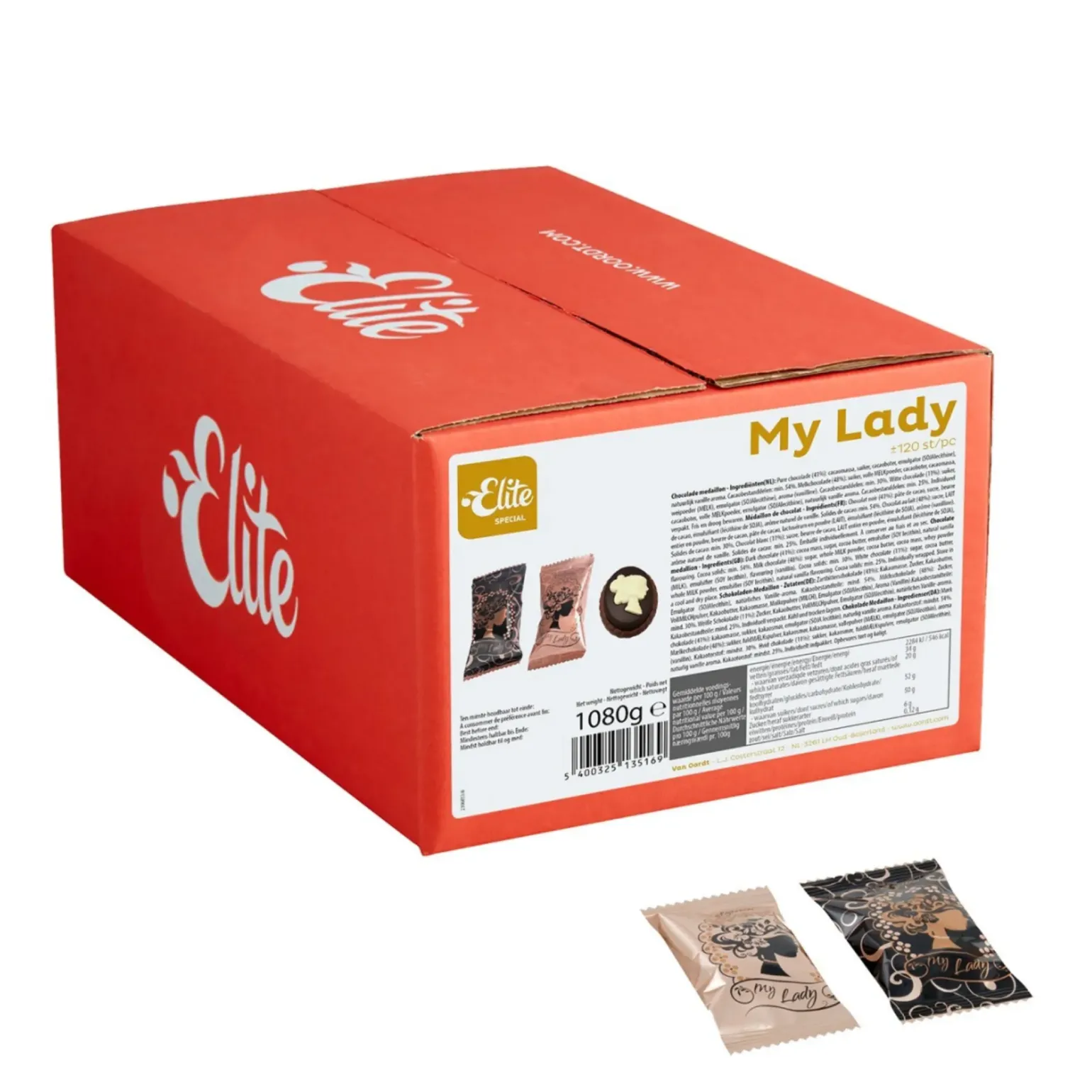 De Elite My Lady Chocolade is verpakt in een handige stuks verpakking. Ieder chocolaatje bevat melk, pure en witte chocolade. Lekker voor bij de koffie of thee of tussendoor. Hygiënisch per stuk verpakt. 100 stuks in een doosje