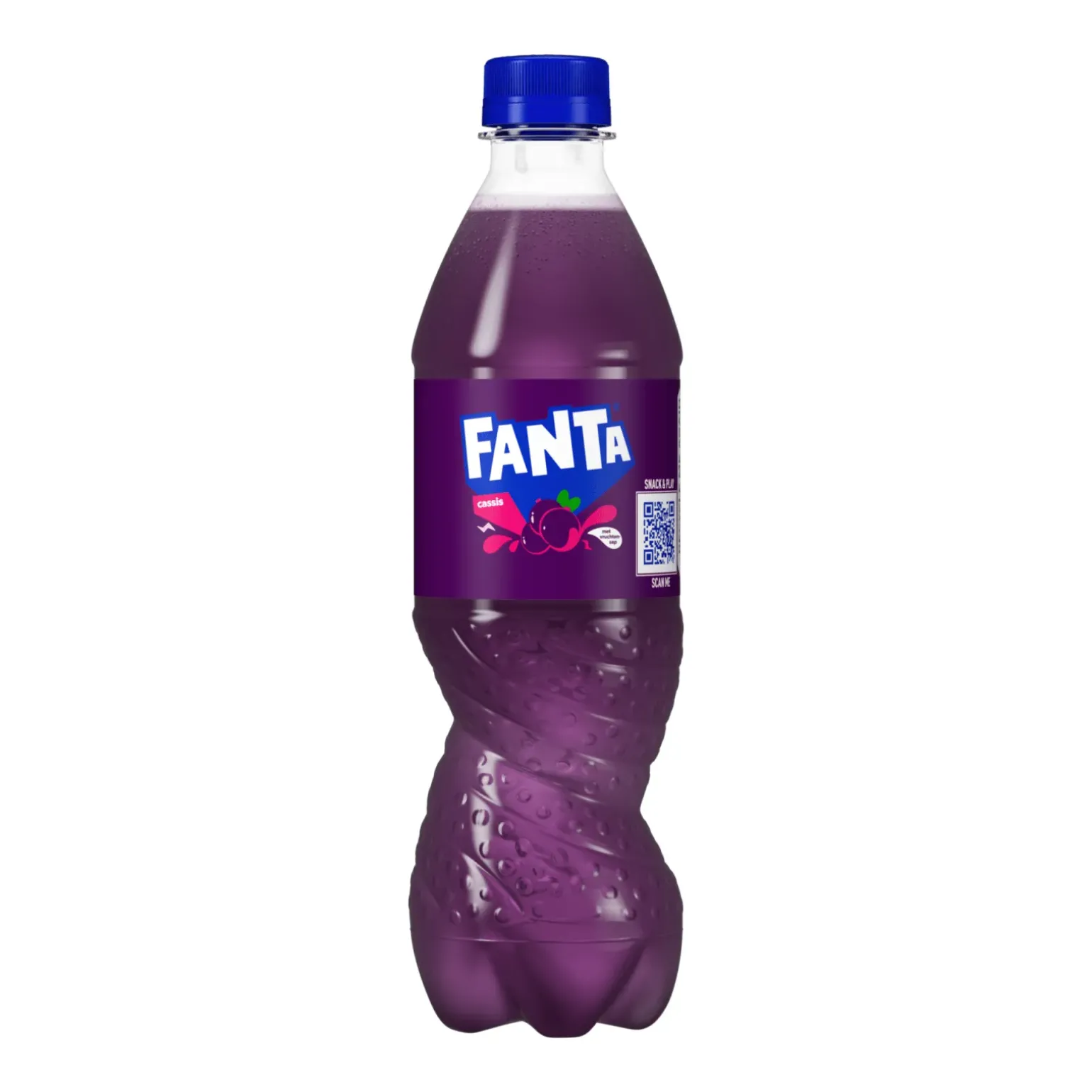 Proef de heerlijke cassisverfrissing van Fanta. Fanta Cassis is een combinatie van sprankelend water en zwarte bessensap. De 500ml fles is de ideale verpakking om onderweg van deze frisdrank te genieten. De PET-fles is gemaakt van 100% gerecycled plastic.