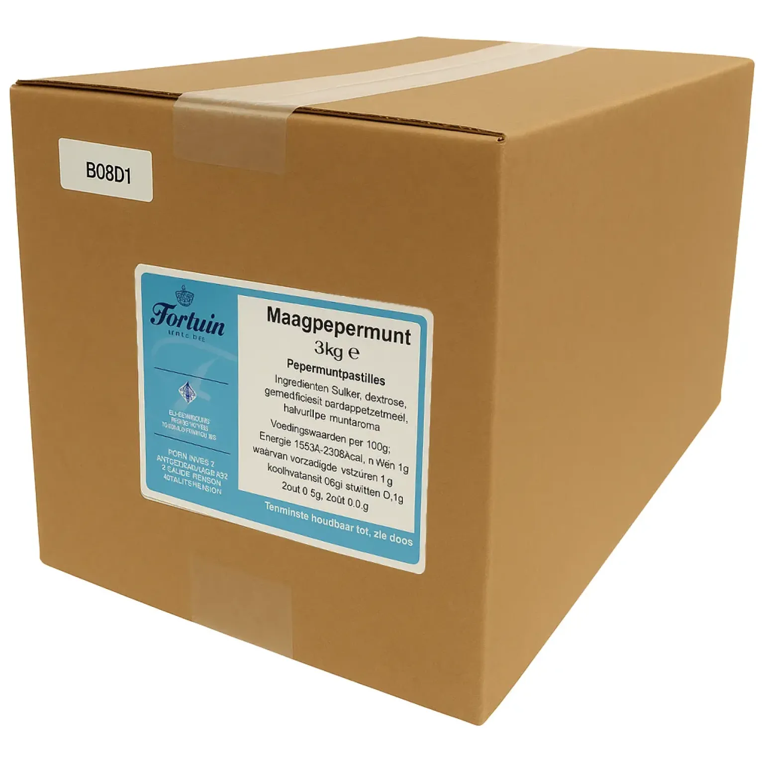 Bij Compliment.nl koop je voordelig de klassieke Fortuin Maagpepermunt in een grootverpakking van 3 kg. Deze vertrouwde pepermuntjes staan bekend om hun frisse smaak en aangename mondgevoel, ideaal om na de maaltijd te nemen of gewoon tussendoor. Dankzij de zachte structuur en de verkoelende pepermuntsmaak zijn ze geliefd bij jong en oud. De handige voordeelverpakking is perfect voor grootverbruik in horeca, kantines, zorginstellingen of gewoon thuis als je nooit zonder wilt zitten. Fortuin Maagpepermunt is al jarenlang een iconisch product dat kwaliteit en smaak combineert.