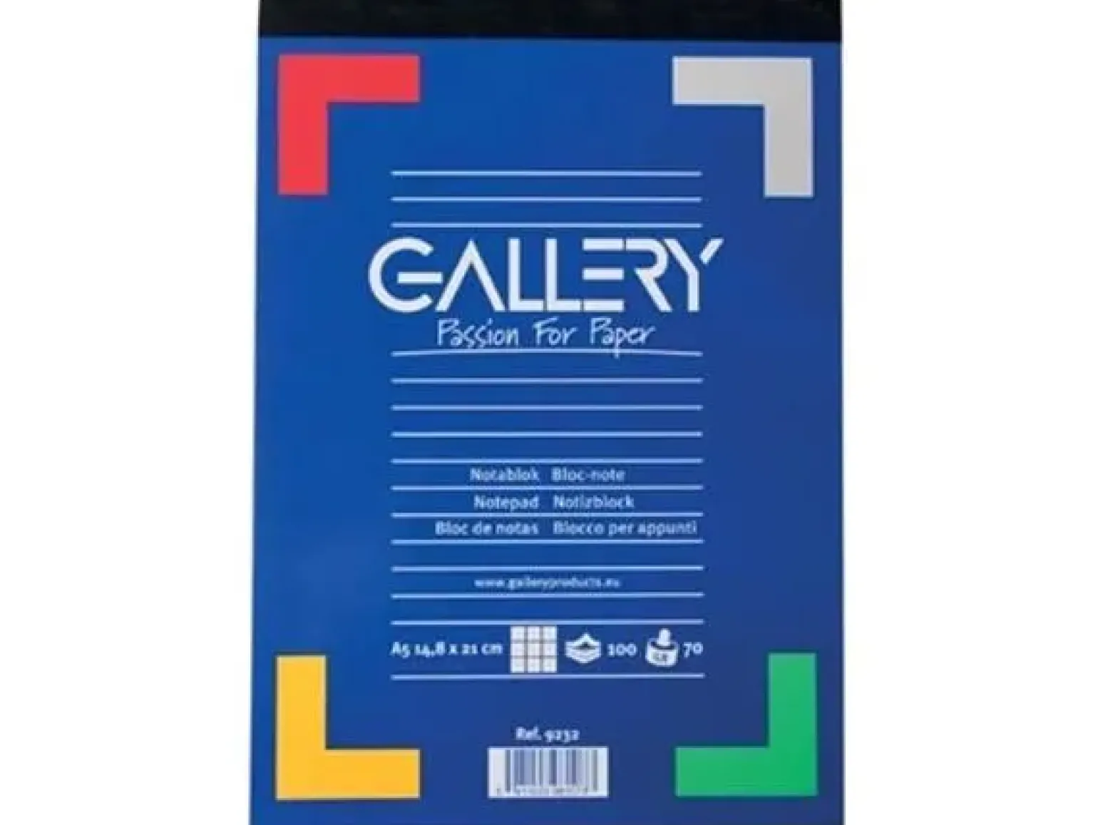 Gallery schrijfblok A5-formaat met ruiten voor al je huiswerk, aantekeningen of samenvattingen! De ruiten zijn 5x5mm. Het Gallery schrijfblok heeft 100 vellen (200 bladzijden).