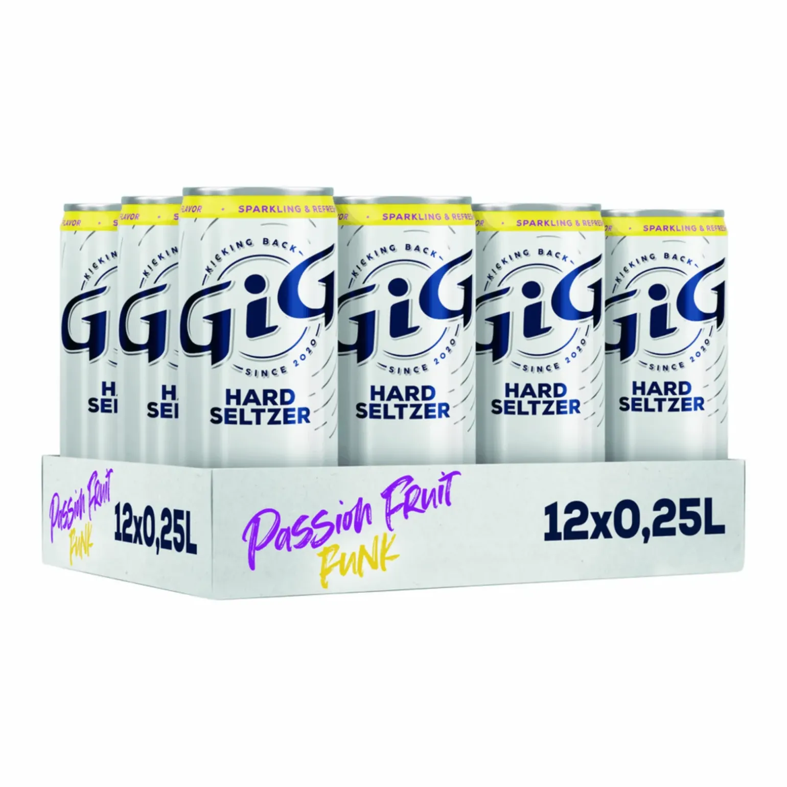 Bij Compliment.nl koop je voordelig GiG Hard Seltzer Passionfruit Funk (12x25cl), de bruisende hard seltzer met een tropische twist. Deze verfrissende drank combineert het exotische aroma van passievrucht met een lichte, funky bite voor een echte smaakexplosie. GiG Hard Seltzer bevat slechts 26 kcal per 100 ml, is laag in suiker en perfect voor wie bewust wil genieten zonder concessies aan smaak. Met een alcoholpercentage van 4,5% is het de ideale dorstlesser tijdens een zomers feestje, op het strand of als frisse borreloptie. De elegante blikjes van 25cl zijn makkelijk koel te houden en ideaal om te delen. Laat je verrassen door de pure eenvoud van bruisend water, natuurlijke aroma’s en een vleugje alcohol – een funky verfrissing bij elke gelegenheid.