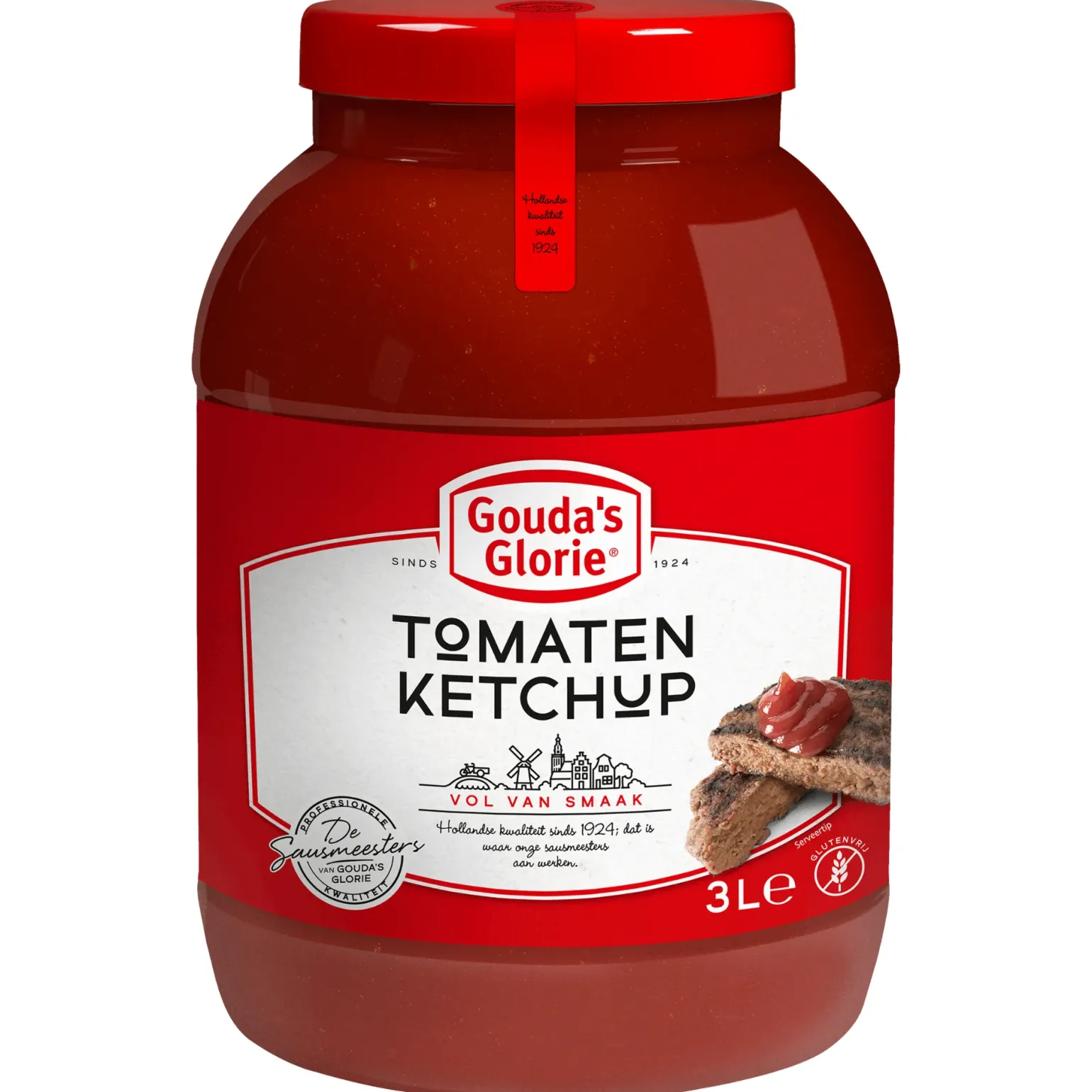 Gouda’s Glorie Tomaten ketchup is een heerlijk zoet-frisse tomaten ketchup boordevol tomaten. Voor elke 100 gram ketchup gebruikt Gouda’s Glorie maar liefst 170g gram tomaten. De combinatie van kruiden en specerijen maakt deze ketchup lekker smaakvol. Heerlijk op hamburgers en tosti’s. Lactosevrij, glutenvrij en vegan.