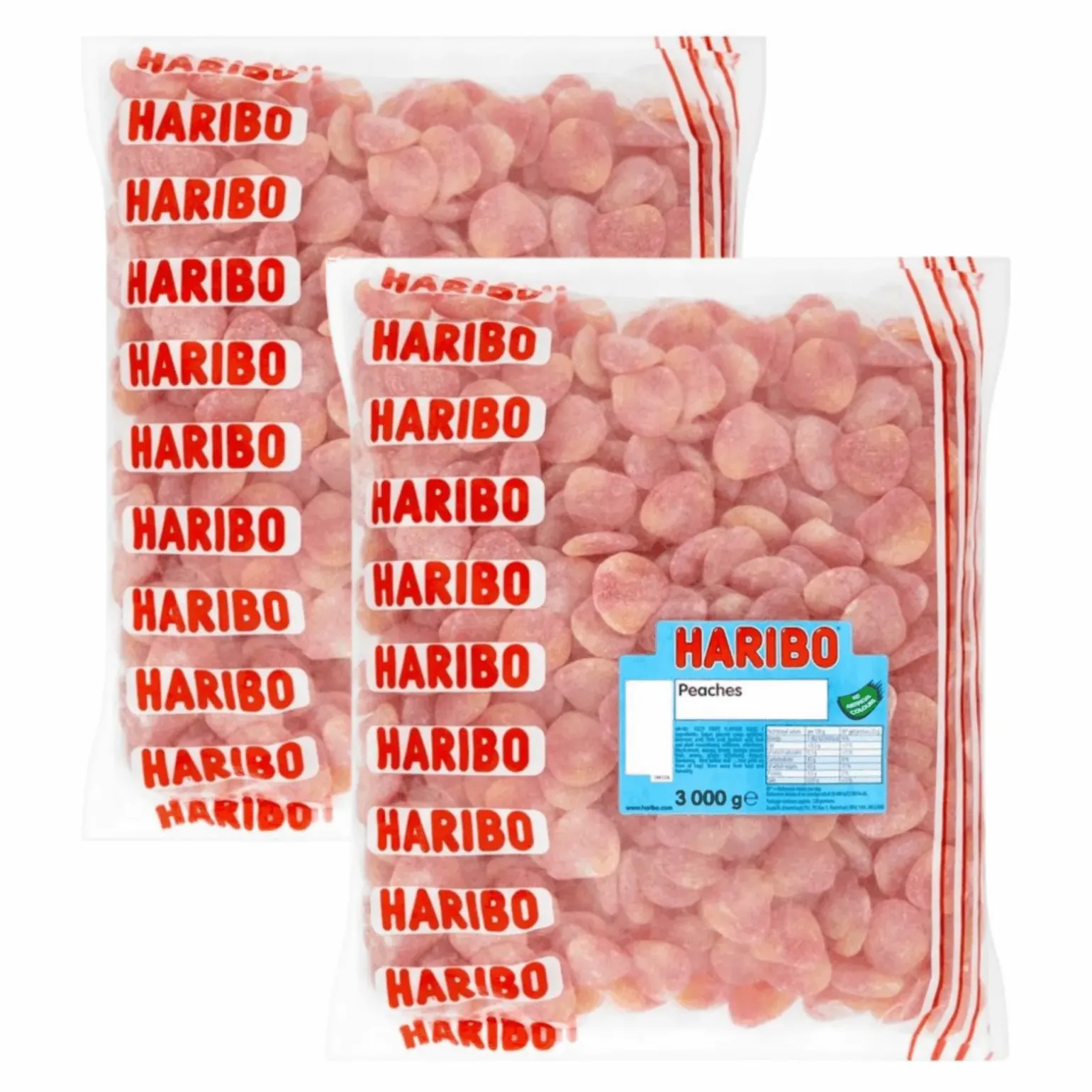 Vrolijk, kleurrijk en fruitig! Haribo perziken is zoete, zachte en zalige fruitgom met een suikerlaagje. Jong en oud zijn gek op de perziken van Haribo. Leuk om uit te delen, te trakteren of te gebruiken bij het maken van snoepzakjes of verrassingszakjes die je verkoopt in de sportkantine of het zwembad. Kortom: de mogelijkheden zijn eindeloos. Waar je Haribo perziken ook voor gebruikt, iedereen zal ervan genieten! Je koopt Haribo perziken natuurlijk voordelig bij online groothandel Compliment.nl: makkelijk besteld en snel geleverd. Haribo perziken koop je per doos van 6 kilo.