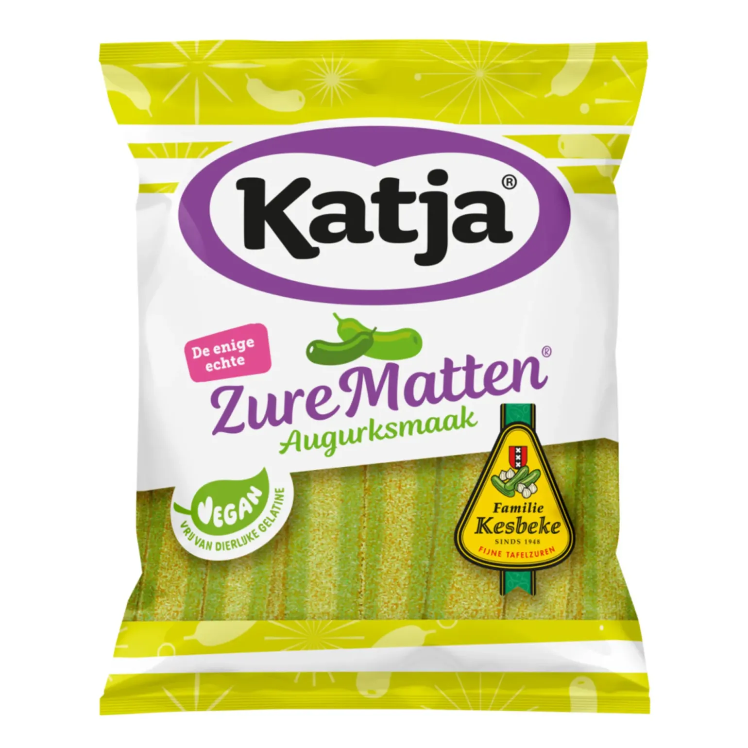 Bij Compliment.nl koop je voordelig Katja Zure Matten Augurken (20x 125g), een verrassend zure en unieke snoepbeleving met de frisse smaak van augurk. Deze opvallende smaakcombinatie is ontwikkeld in samenwerking met augurkenkoning Kesbeke en is inmiddels een echte cultfavoriet geworden. De zure matten zijn heerlijk soepel van structuur, intens zuur en perfect in balans met hun uitgesproken smaakprofiel. Ze worden gemaakt met natuurlijke kleur- en smaakstoffen en zijn volledig gelatinevrij, waardoor ze ook geschikt zijn voor vegetariërs. Dankzij de handige portieverpakkingen van 125 gram zijn ze ideaal om te delen of voor onderweg. Een speelse en smaakvolle traktatie voor wie houdt van zuur met een twist.