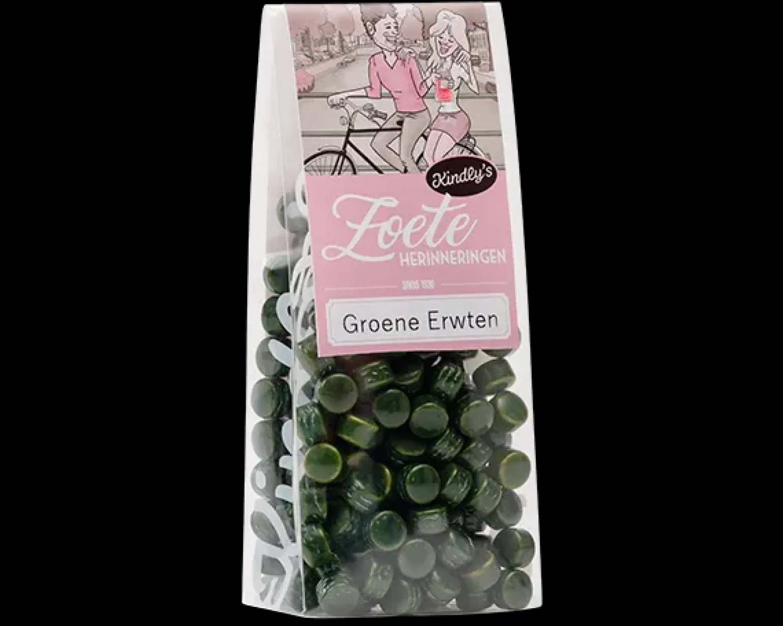 Kindly’s groene erwten zijn harde, kleine droppastilles met metnholsmaak. Deze unieke smaakcombinatie laat je wegdromen naar zoete herinneringen. De mintgroene snoepjes worden veel gebruikt in snoepmixen. En natuurlijk zie je de snoeperwtjes ook in snoepwinkels en marktkramen als schepsnoep. Ze zitten in een mooie verpakking. Leuk om zelf te verkopen, of om uit te delen als traktatie of relatiegeschenk. Voordelig Kindly’s groene snoeperwten kopen doe je natuurlijk bij online snoepgroothandel Compliment.nl. Je koopt Kindly’s groene erwten per doos met 7 zakjes van 200 gram.