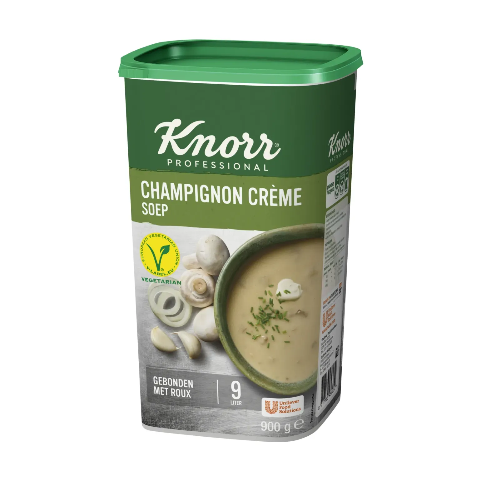 Een heerlijke champignoncrèmesoep van Knorr. Knorr soep staat voor kwaliteit, gemak en variatie. Met 1 bus is 9 liter champignoncrèmesoep te maken. Er zit 0.9 kg in een bus.