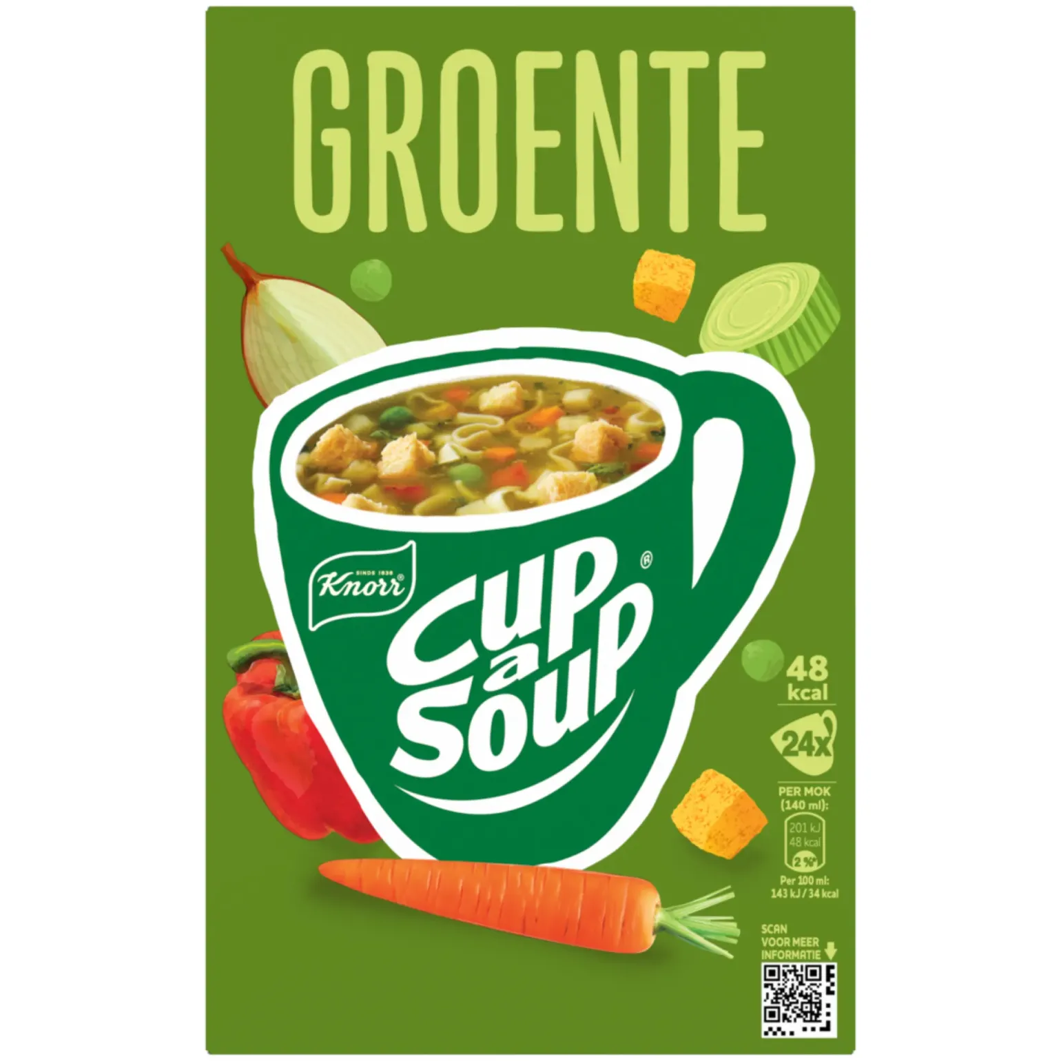 Knorr Cup-a-Soup Groente 24×140 ml is een snelle, hartige soep voor tussendoor met de herkenbare smaak van diverse groenten. Deze instant soep is eenvoudig te bereiden door heet water toe te voegen en is ideaal voor kantoren, kantines en onderweg. De doos bevat 24 porties van 140 ml, individueel verpakt voor gemak en hygiëne. Cup-a-Soup staat bekend als een populair 4-uurmomentje en biedt een warme pauze tijdens werk of studie.