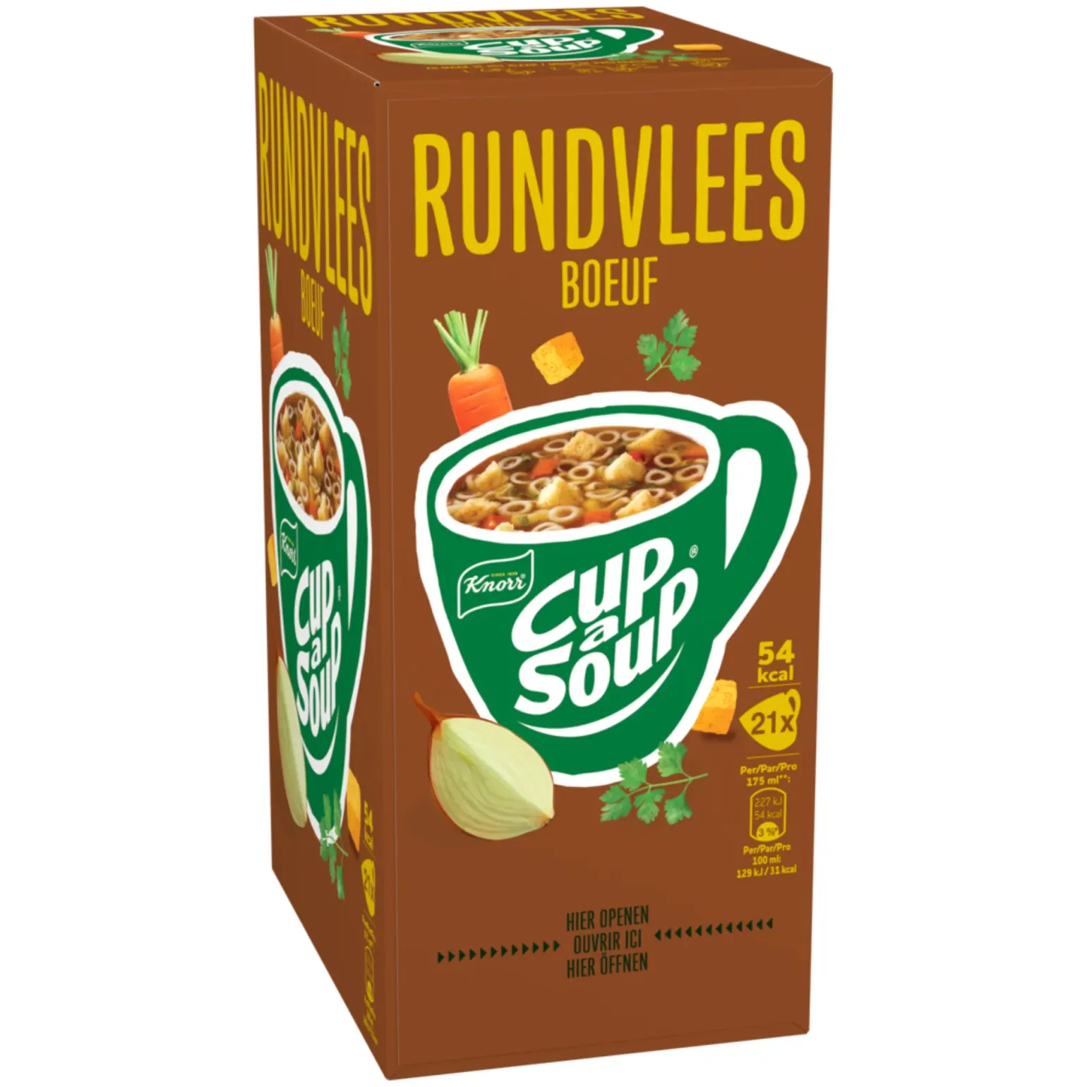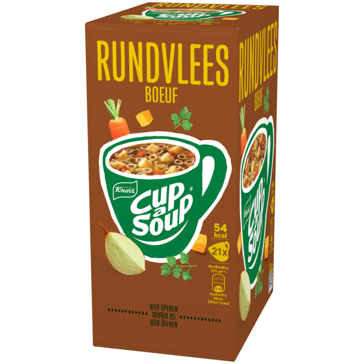 Knorr Cup-a-Soup Tomaat (21x 175ml) is een populaire instant moksoep met de herkenbare smaak van rundvlees. Deze snelle soep bevat kleine knapperige croutons die zorgen voor extra bite en een rijke, hartige smaakbeleving. Ideaal als warm tussendoortje op kantoor, in de kantine of thuis. Met de handige portiezakjes maak je in een minuut een mok soep: voeg eenvoudig kokend water toe en roer goed door. De doos bevat 21 zakjes en is daardoor perfect voor gedeeld gebruik of als praktische voorraad.