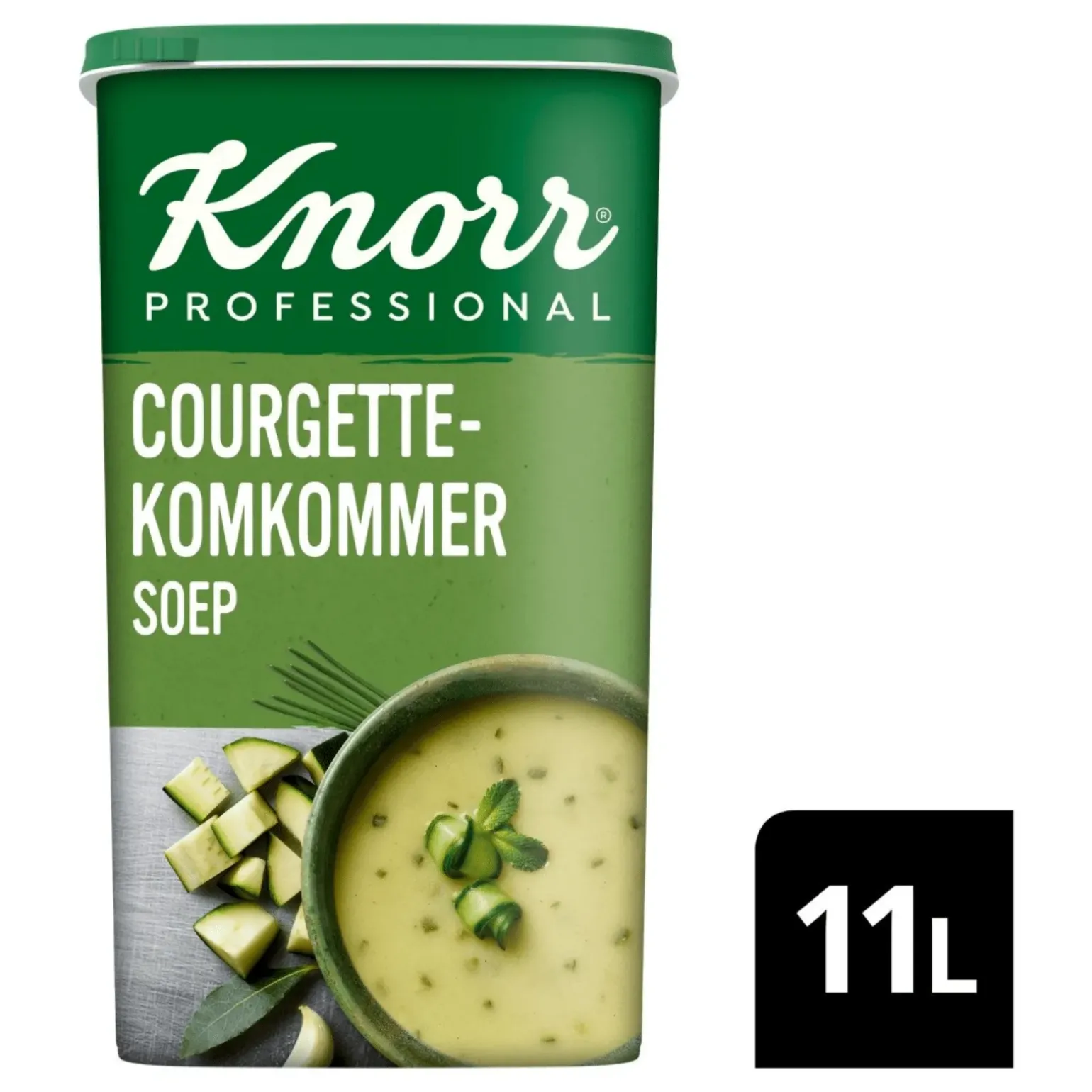 Een romige soep met de smaak van courgette en komkommer. Er kan met deze bus 11 liter soep gemaakt worden. Er zit 1,045 kg in een bus.