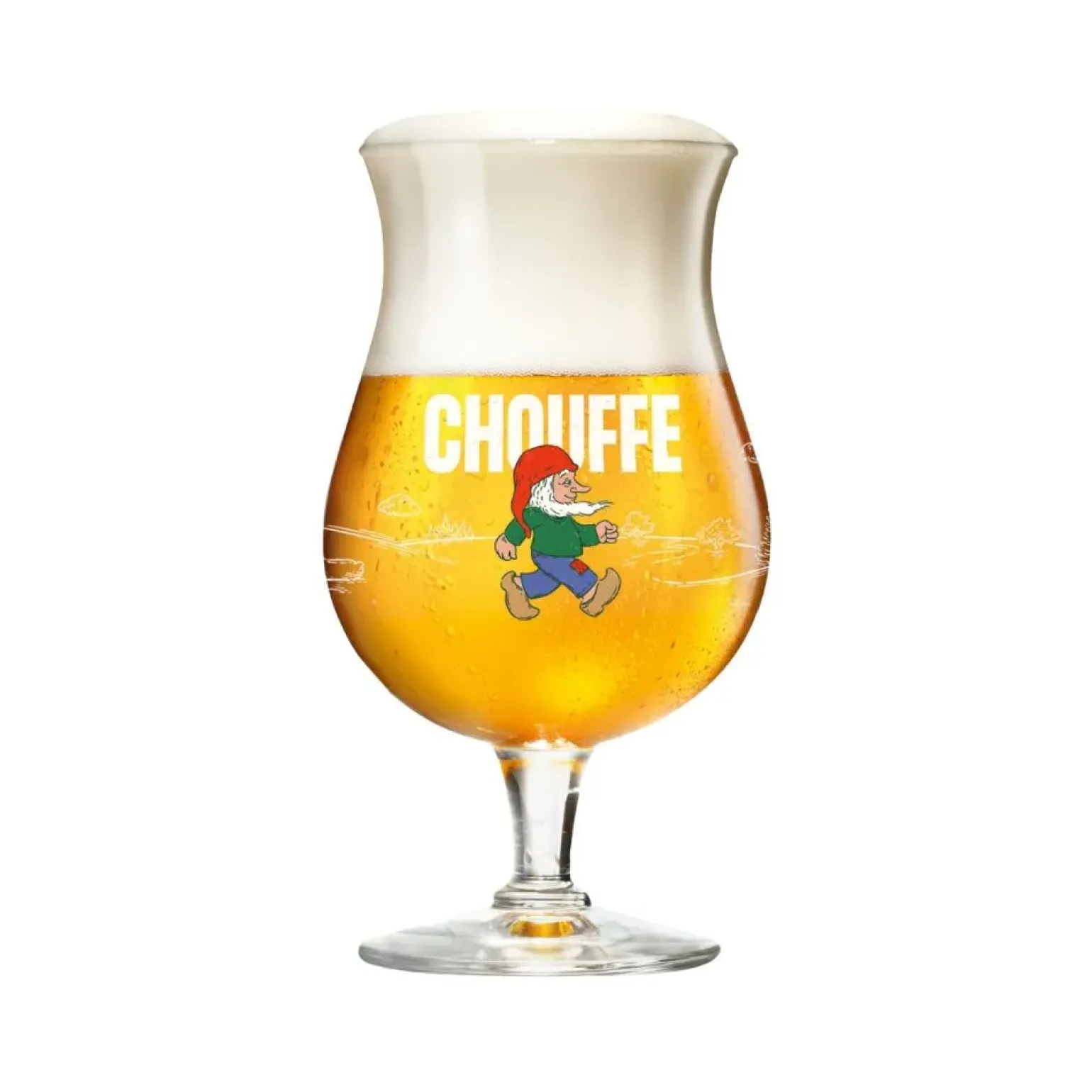 Wist je dat La Chouffe Kabouterbier wordt gebrouwen in de vallei der Feeën? Zo’n bijzonder biertje drink je natuurlijk uit een sprookjesachtig mooi glas. De kelk is aan de onderkant perfect rond zodat het lekker in je hand ligt. Daarna loop het toe richting de kraag die weer wat uitloopt. Dee unieke vorm zorgt niet alleen voor meer karakter, maar ook voor een volle schuimkraag die de smaken en geuren van het La Chouffe bier bij elke slok optimaal tot hun recht laten komen.