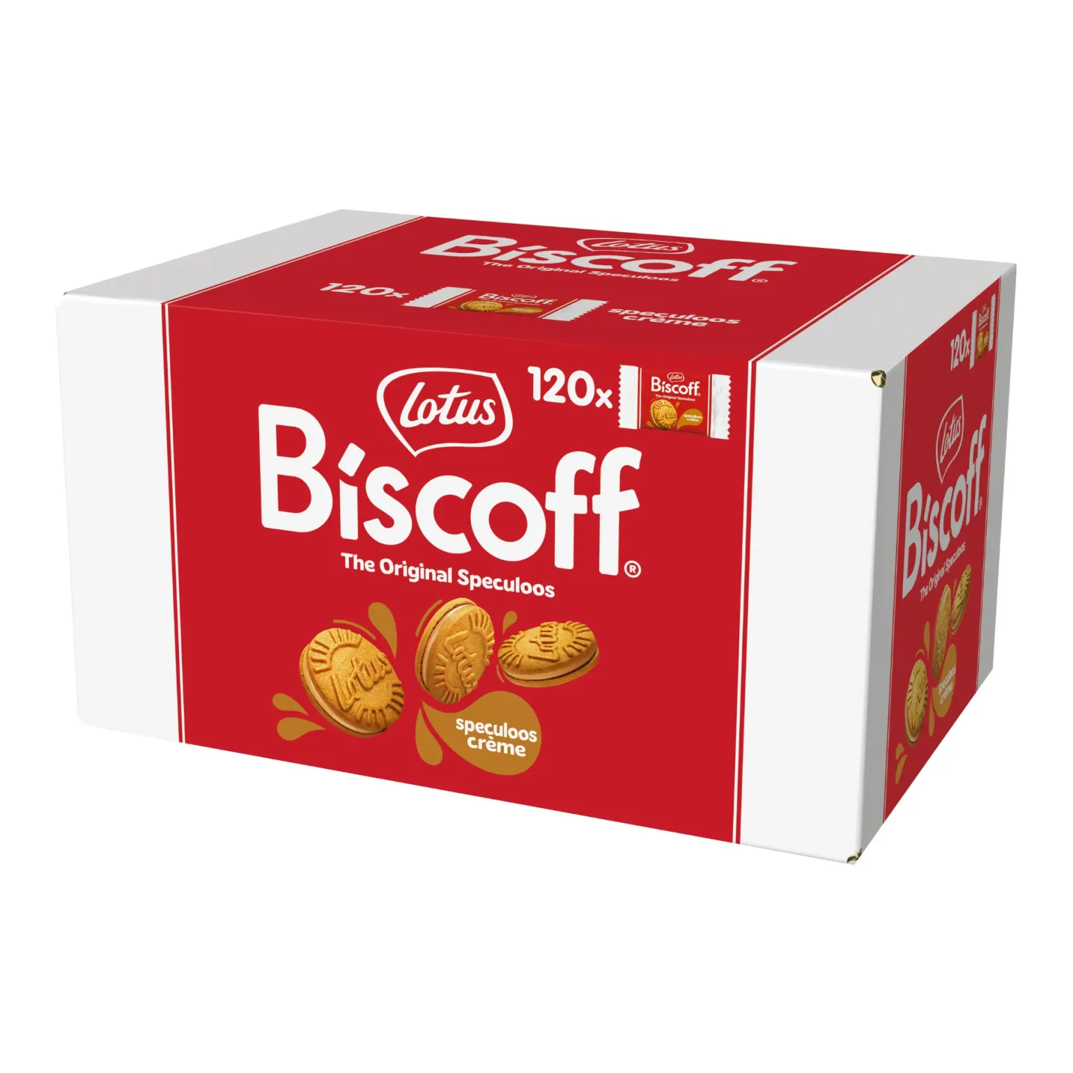 Deze Lotus Biscoff Cream koekjes zijn een heerlijke upgrade van de klassieke Lotus speculoos: twee knapperige speculoos-koekjes met een romige speculooscrème-vulling ertussen, individueel verpakt voor frisheid en gemak. Perfect als smaakvol tussendoortje of bij een kop koffie of thee in horeca, op kantoor of tijdens events. De combinatie van de iconische Lotus-speculoossmaak met een zachte crème maakt dit tot een crowd-pleaser die gasten keer op keer kiezen.