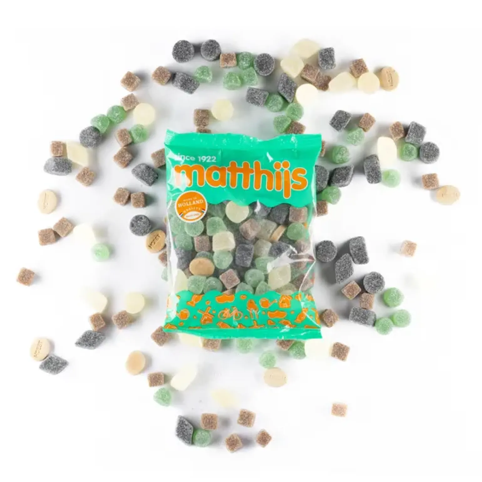 Een heerlijk verzachtende hoestmelange met onder andere frisse mentholgroentjes, griotten, hoestsnoepjes en zachte gesuikerde dropsmaken.