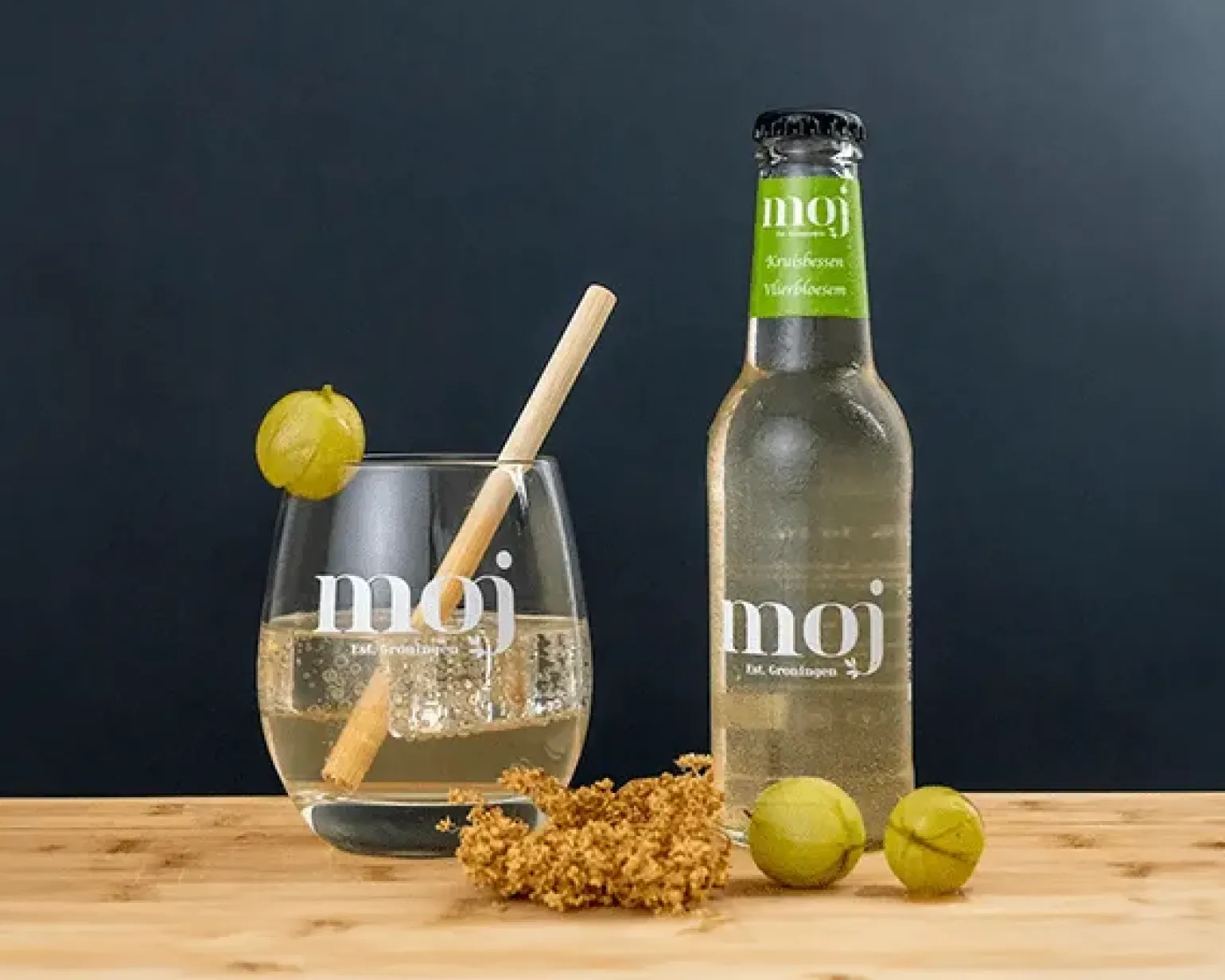 Moj lemonade biologische frisdrank kruisbes vlierbloesem